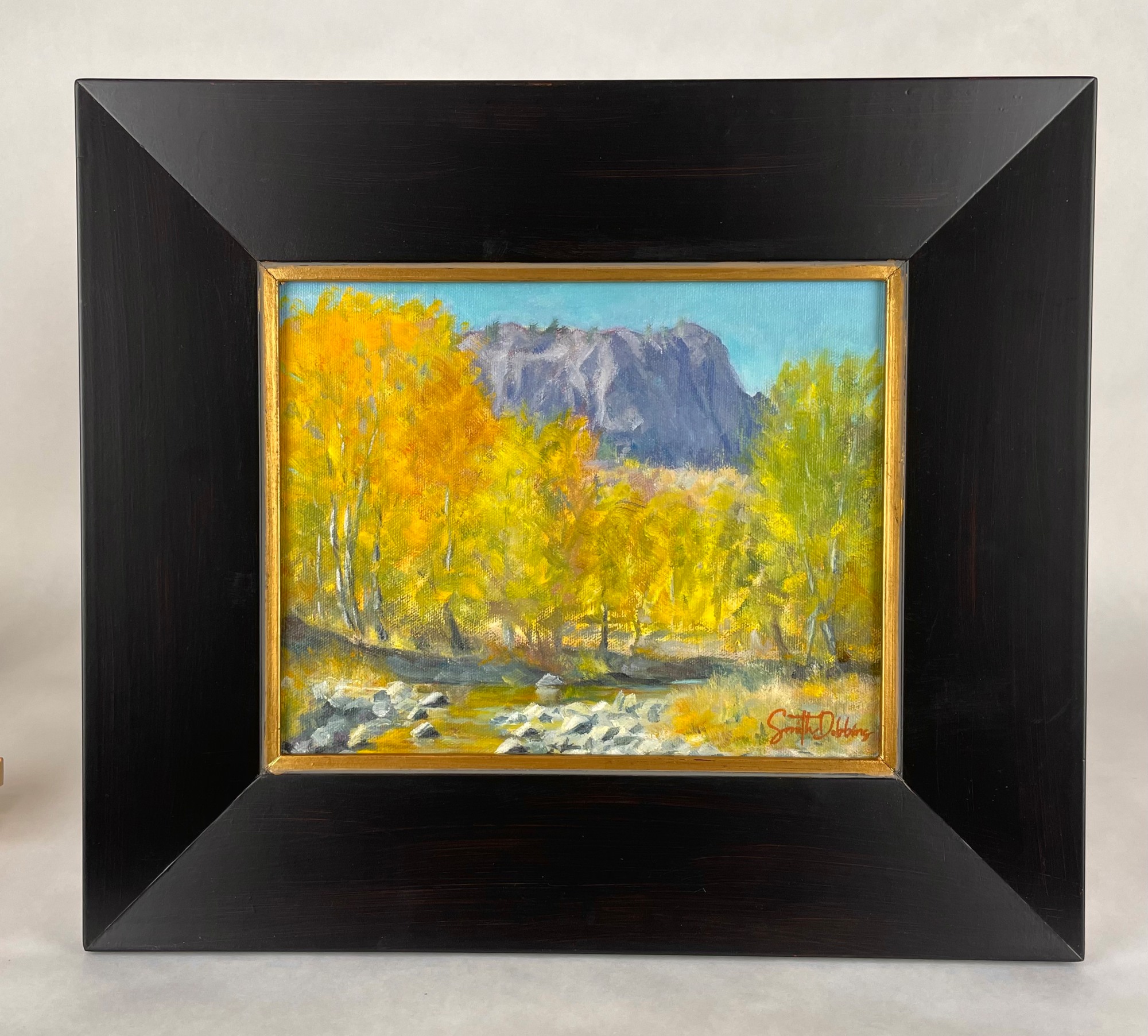 The fall colors this year are ablaze and I headed out to paint at Sheep Creek, a nearby creek that trickles into the Missouri River. It's thick with aspens and the glowing color reflects so beautifully off the water.