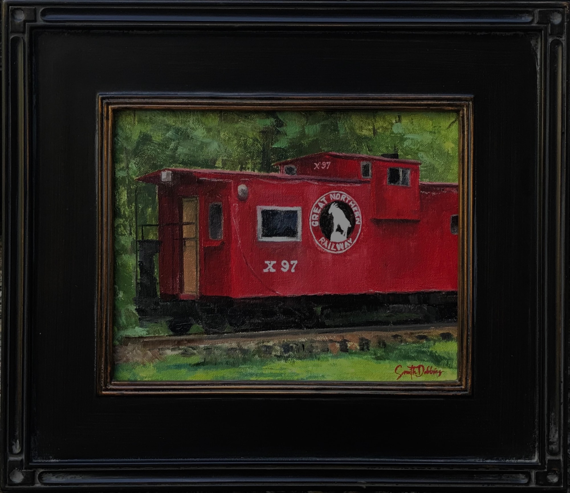 This bright red caboose was painted en plein air at the Izaak Walton Inn in Essex, MT. I was participating in the Plein Air Glacier 2020 event through the Hockaday Museum in Kalispell, MT and painted several pieces in preparation for their auction and sale.