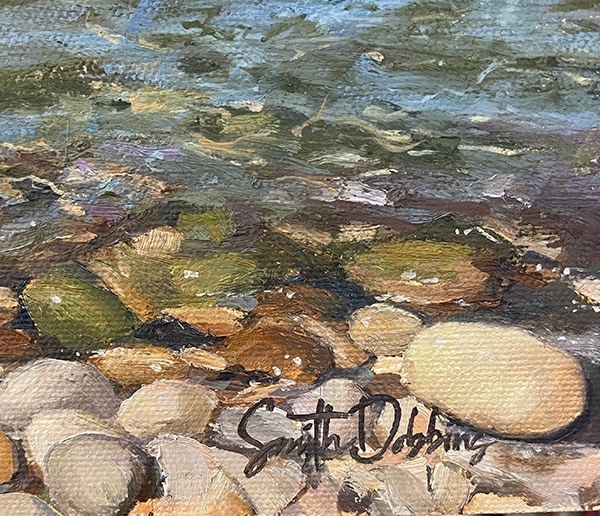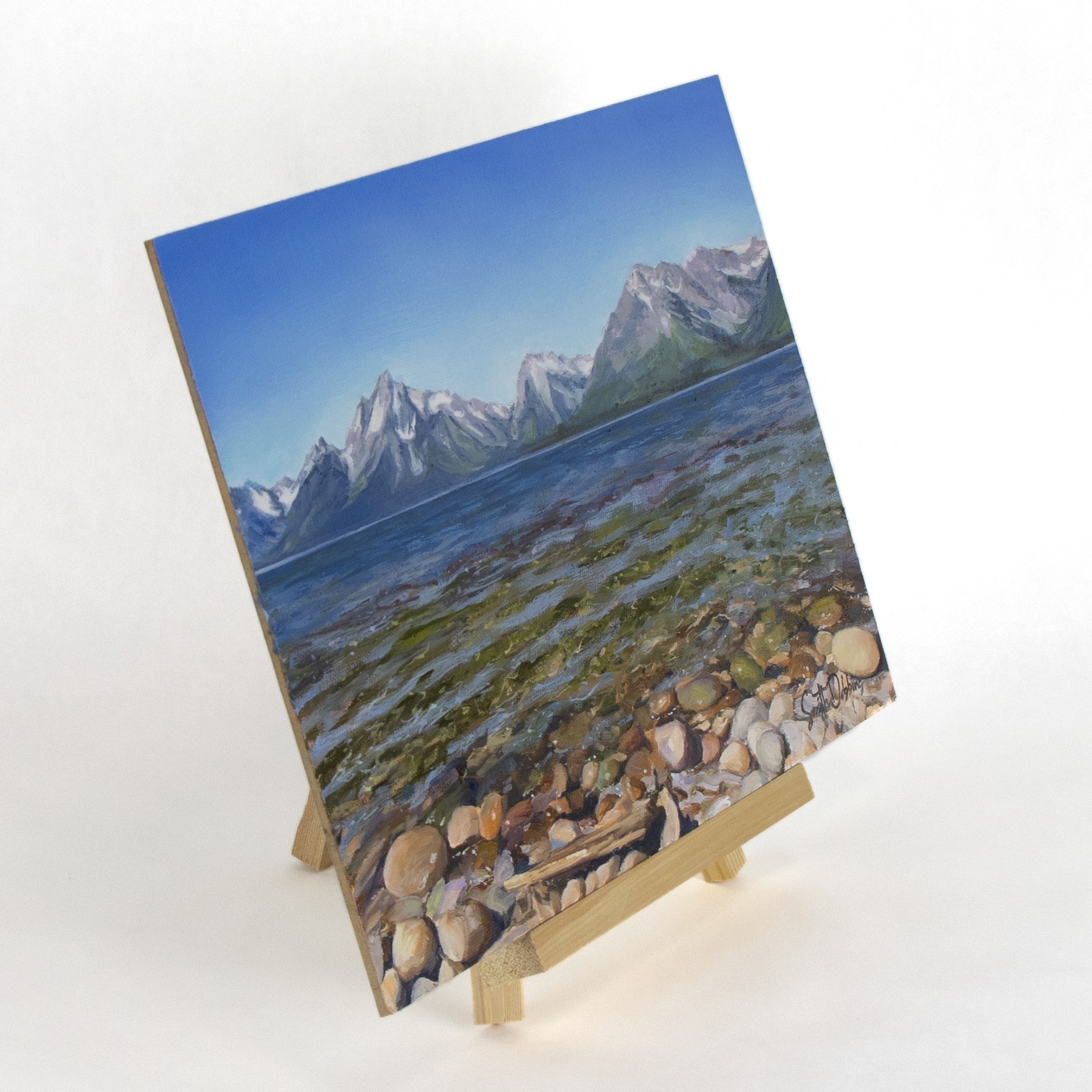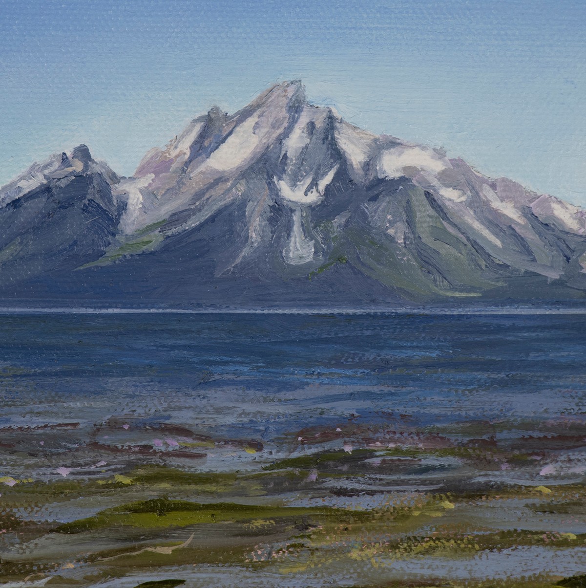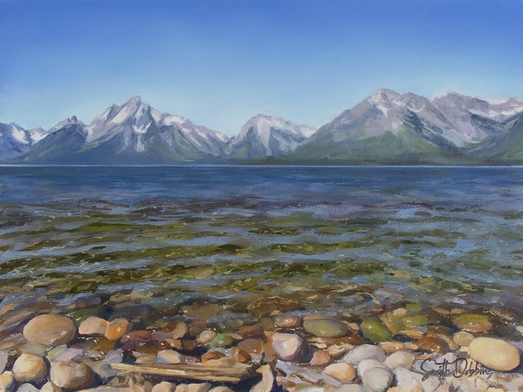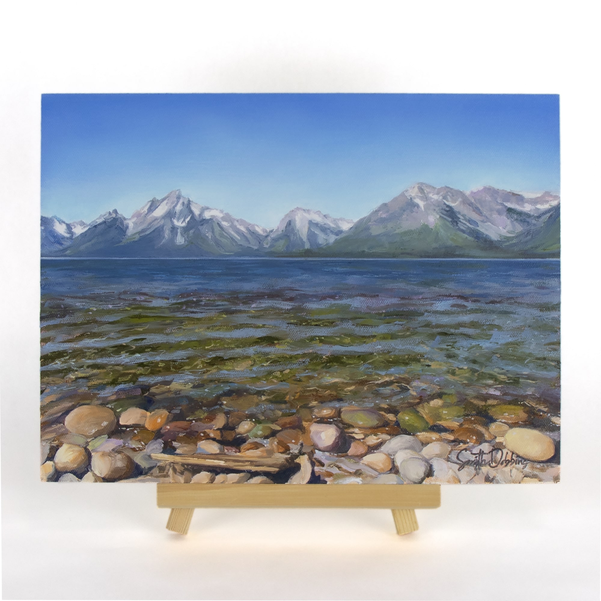 A commission painting of Jackson Lake with the Grand Tetons in the background.