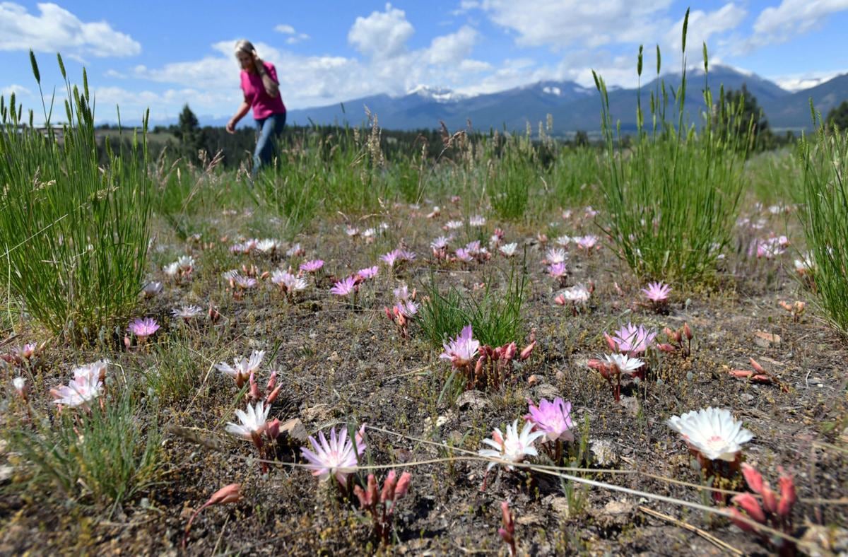 This brilliant little flower is a bitterroot, state flower of MT. My hubby took a beautiful picture of one I just had to paint. Although my rendition is cropped in close, bitterroots are a small low growing flower found on the sagebrush plains and foothills. They add a splash of color to the usually bland habitat of which they prefer, as pictured in the photo of bitterroots growing in a field near Missoula, MT. Photo credit given to the Missoulian newspaper.