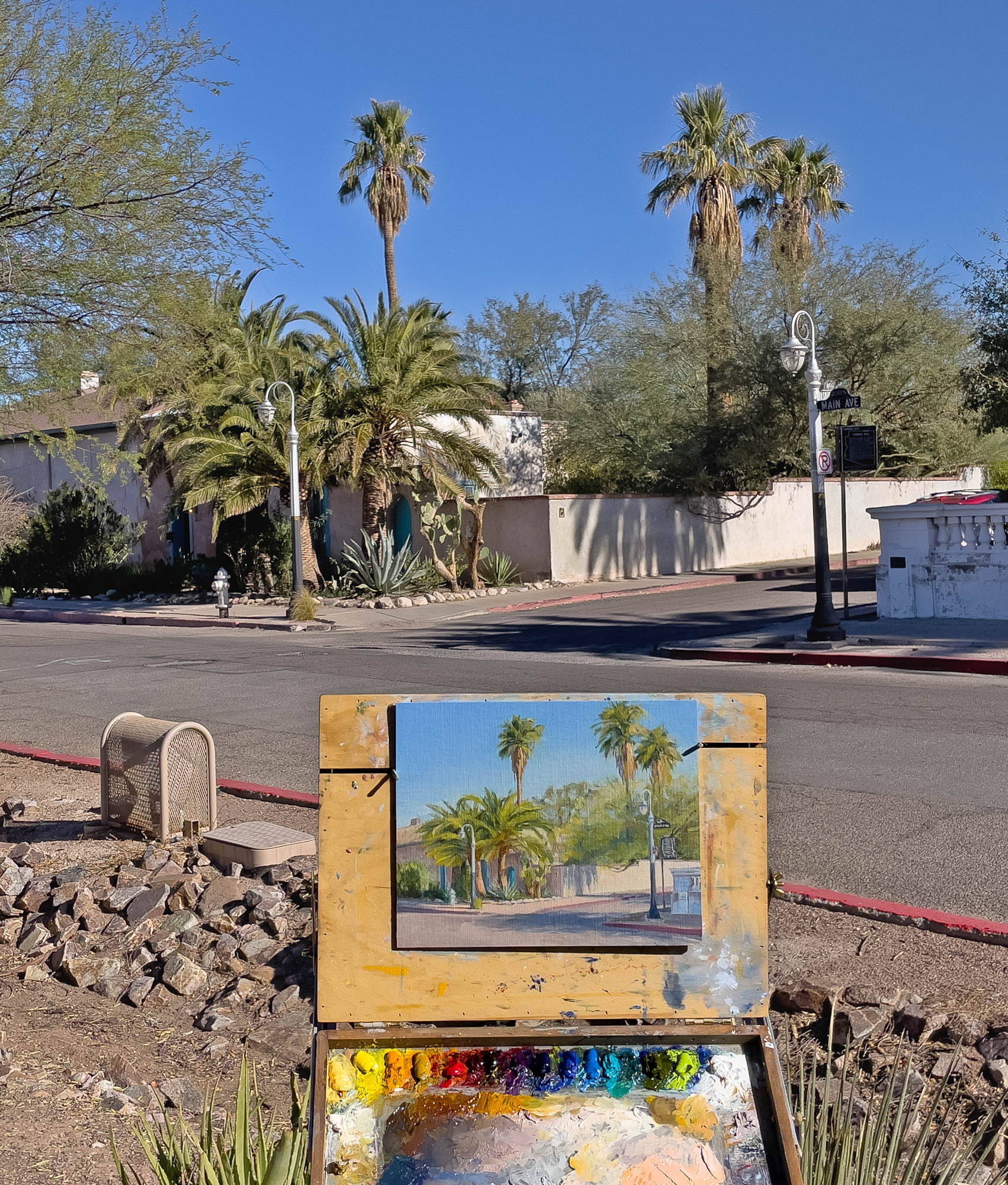 The house across the street is one of the oldest in Tucson, the Sam Hughes house, that I painted over three sessions. I read that Mrs. Hughes had 15 children in that house. I’ll bet she would’ve given anything for a spa day.
