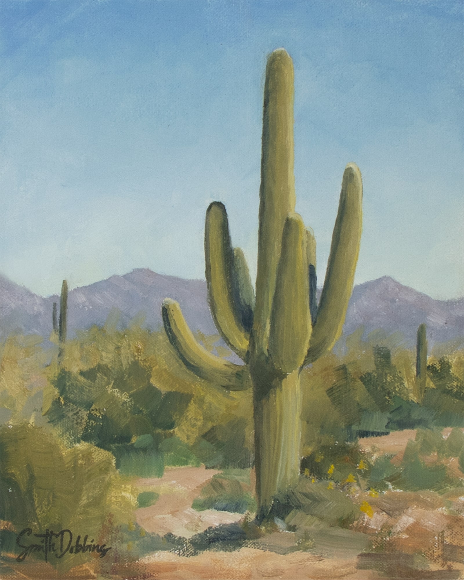 Arizona’s stately saguaros are so impressive and fun to paint, from their height right down to the millions of wickedly long thorns. I imagine this one has been there a good long time just watching life go by.