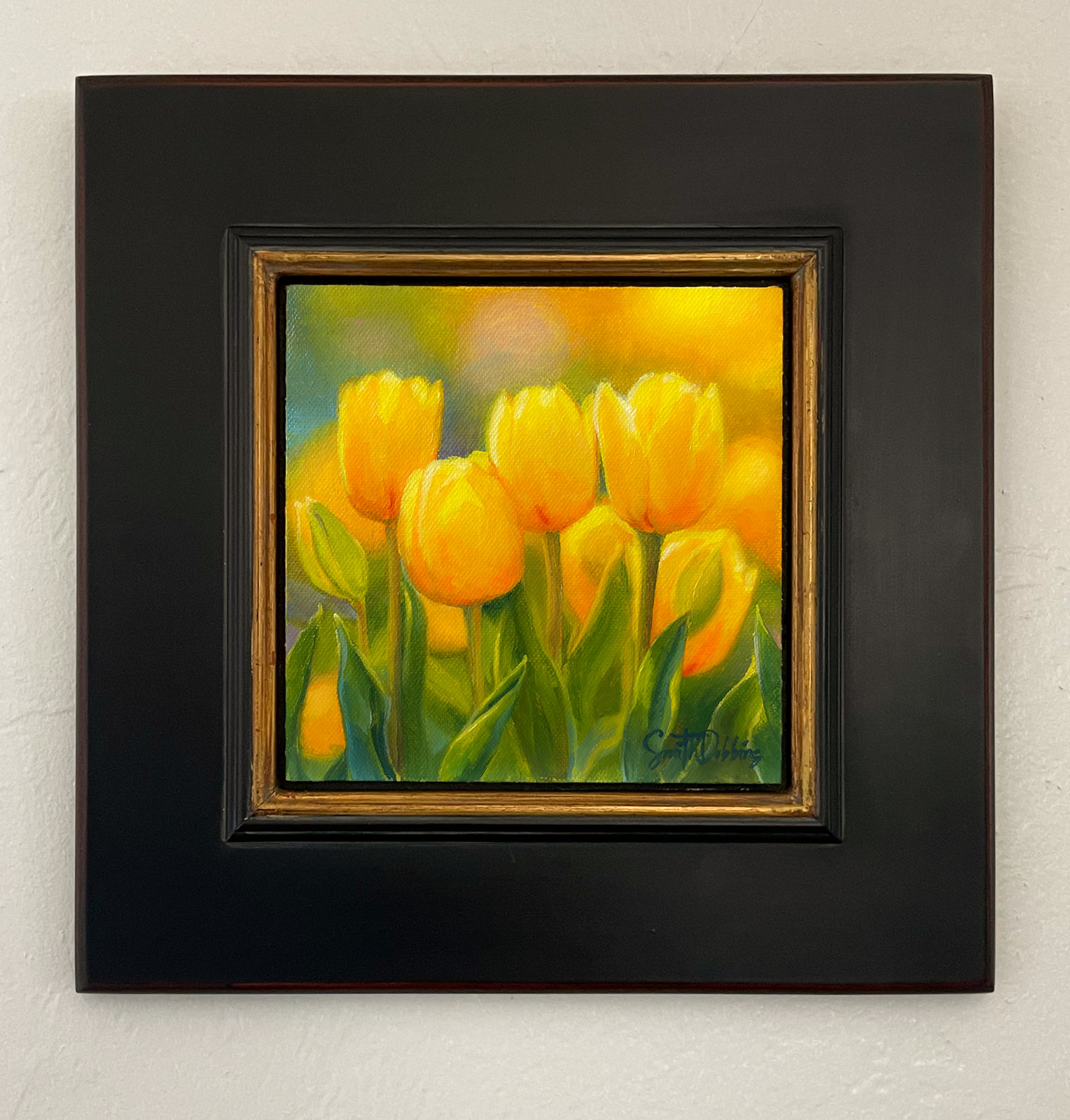 Framed in a burnished floating frame.