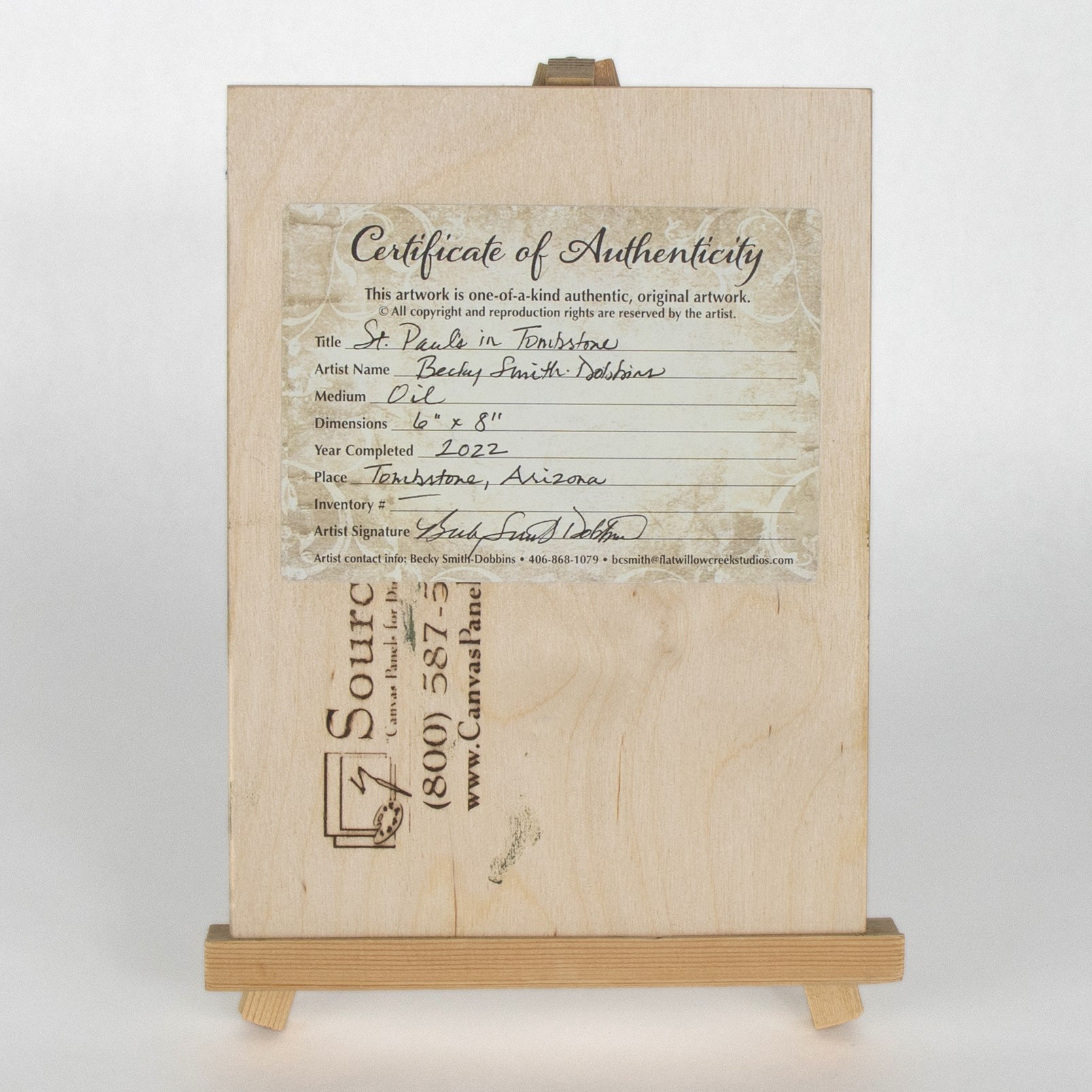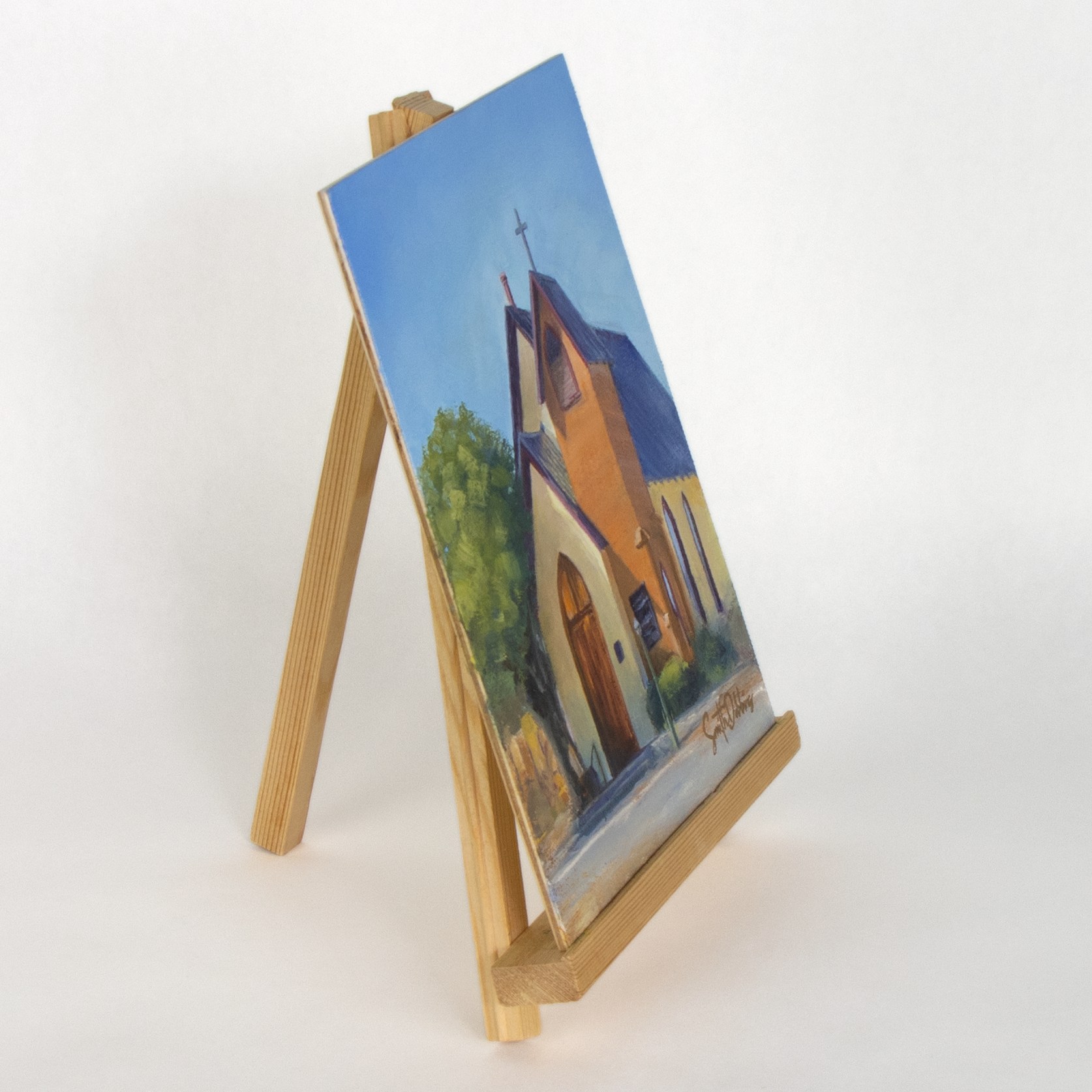 While staying in Tombstone, AZ this cute little church caught my eye. I set up my easel across the street and got busy drawing (lot of angles on this one). The wind came up hard so this plein air became a studio finish.