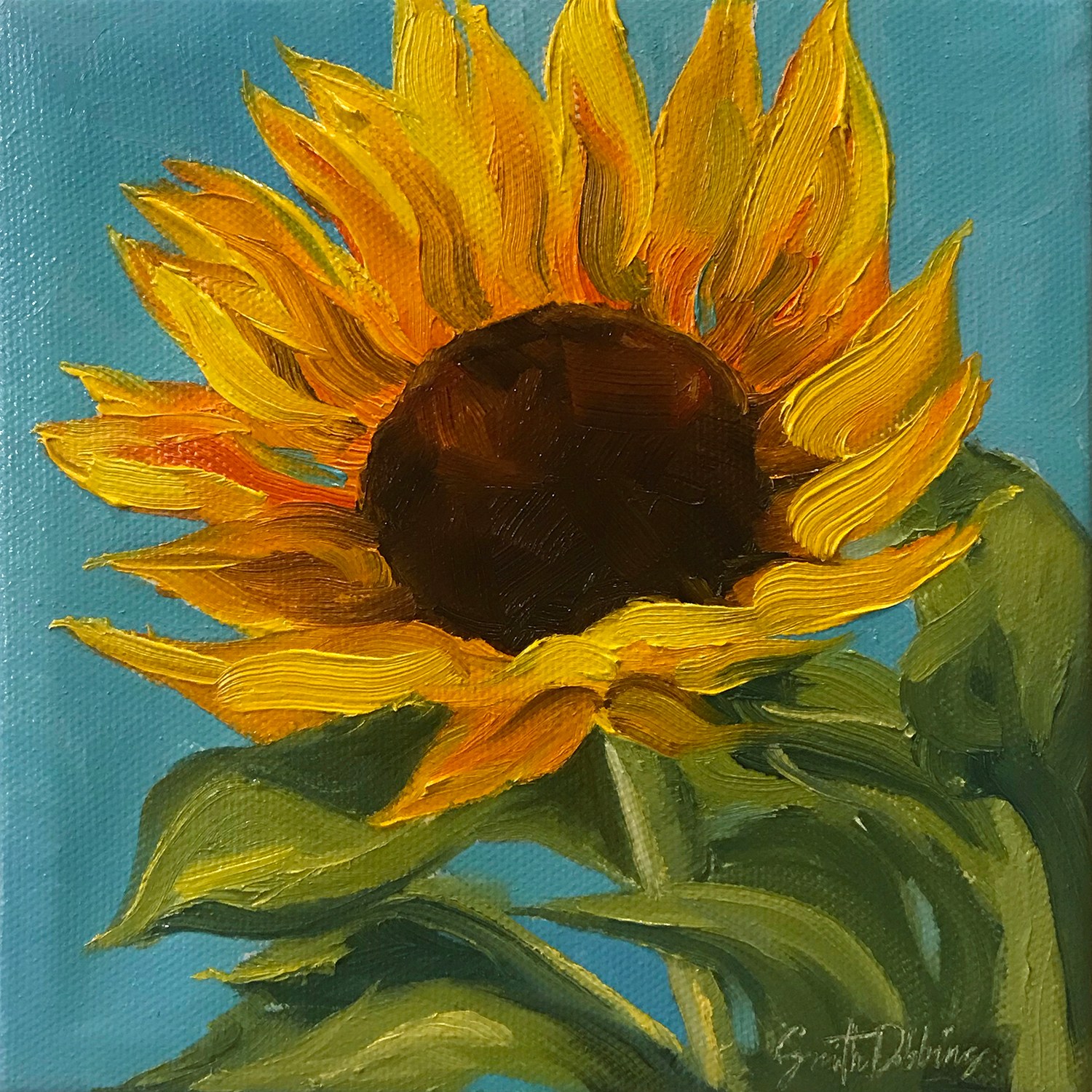 Sunflowers are so fun to paint and instantly bring the sunshine indoors. There will be more!