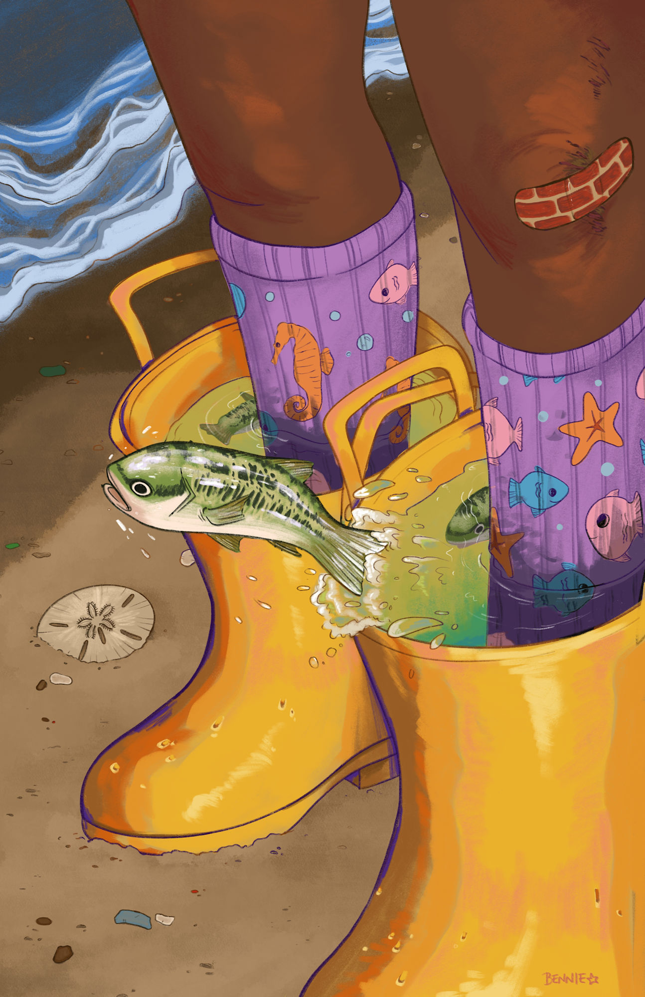 williams, digital illustration, 2024, waterlogged rainboots by Bennie Williams