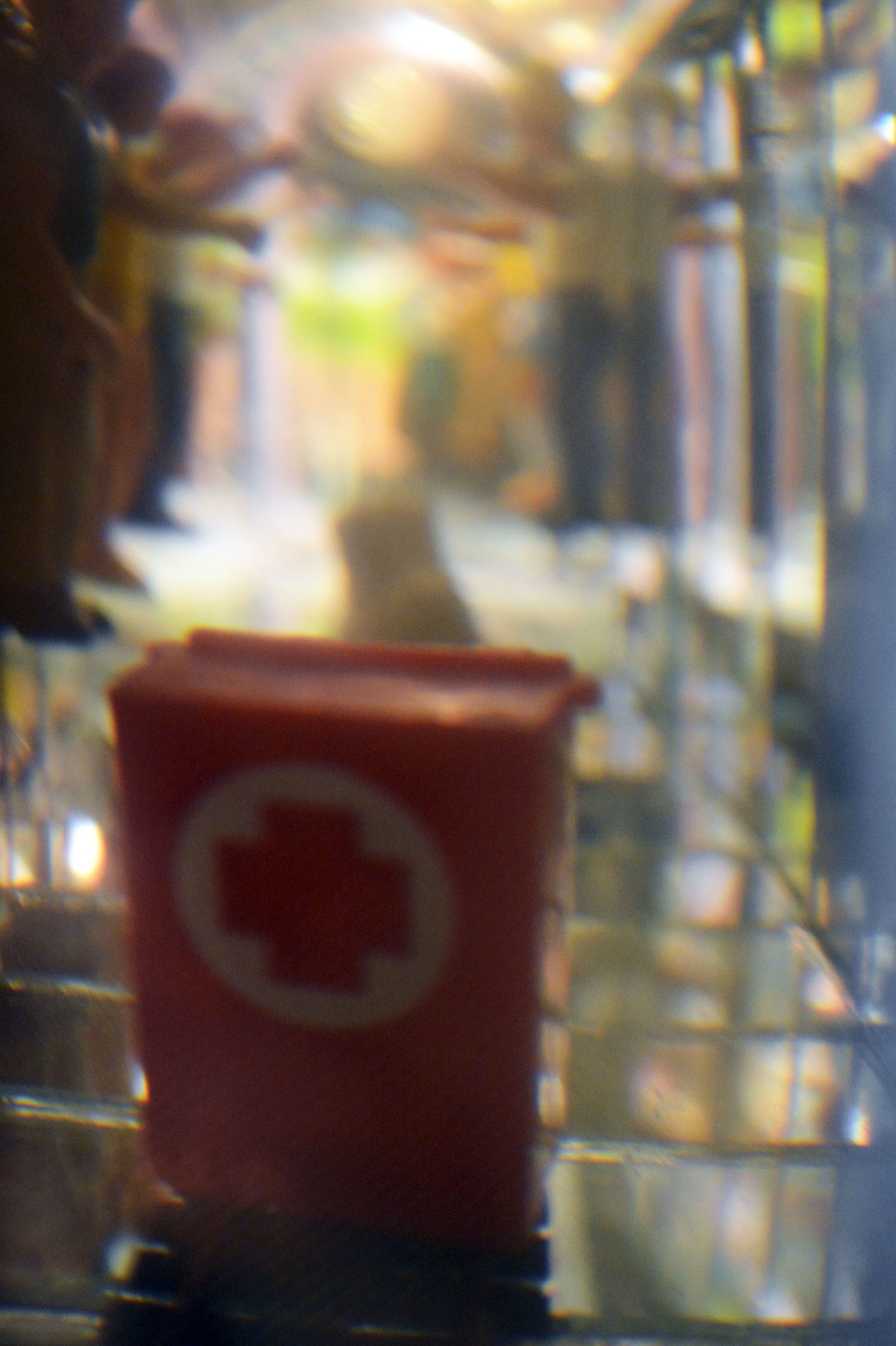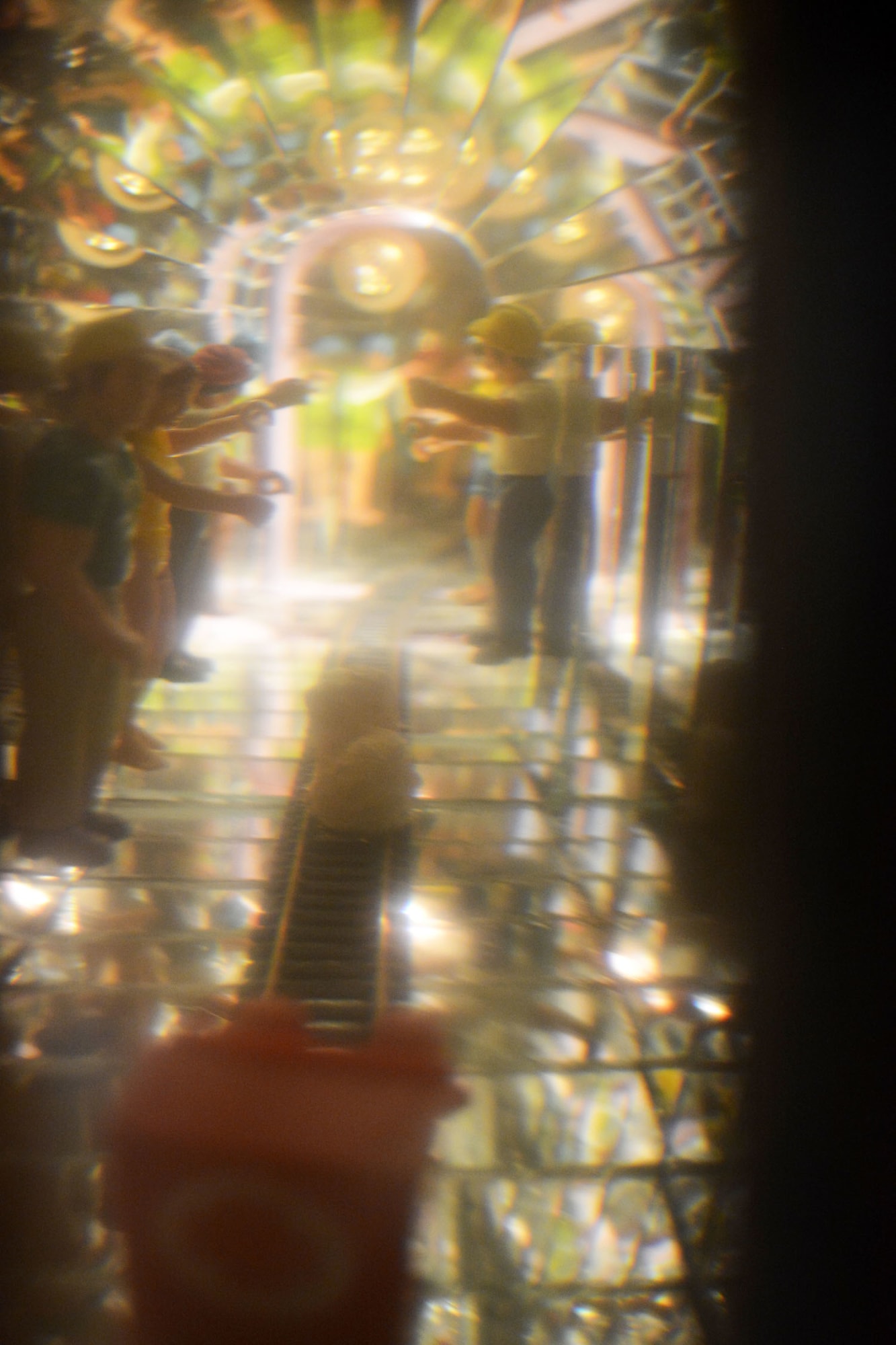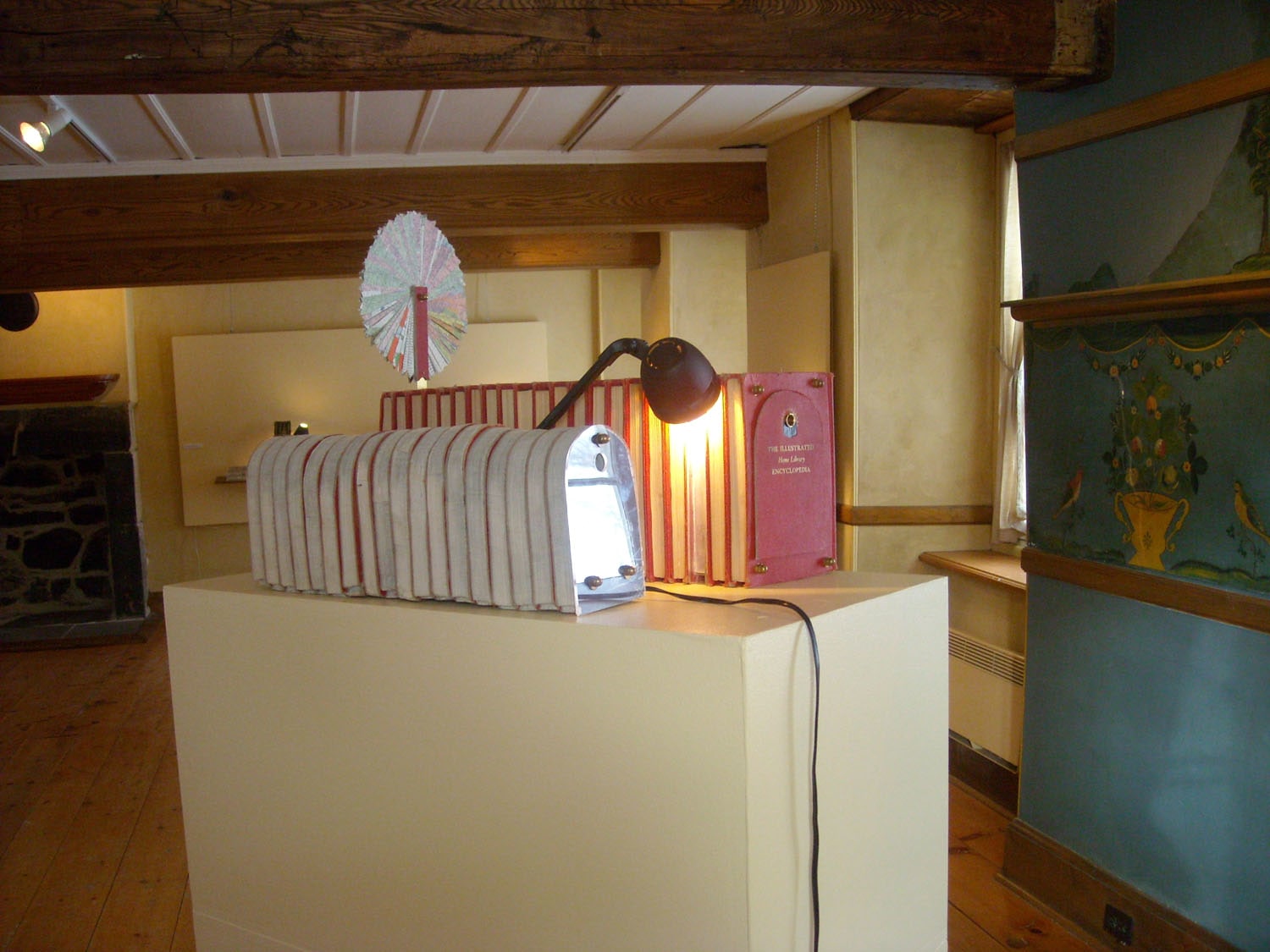 Materials: encyclopaedia (The Illustrated Home Library Encyclopaedia), found objects, acrylic sheet, judas(2), mirrors, plastic lens, lamp.