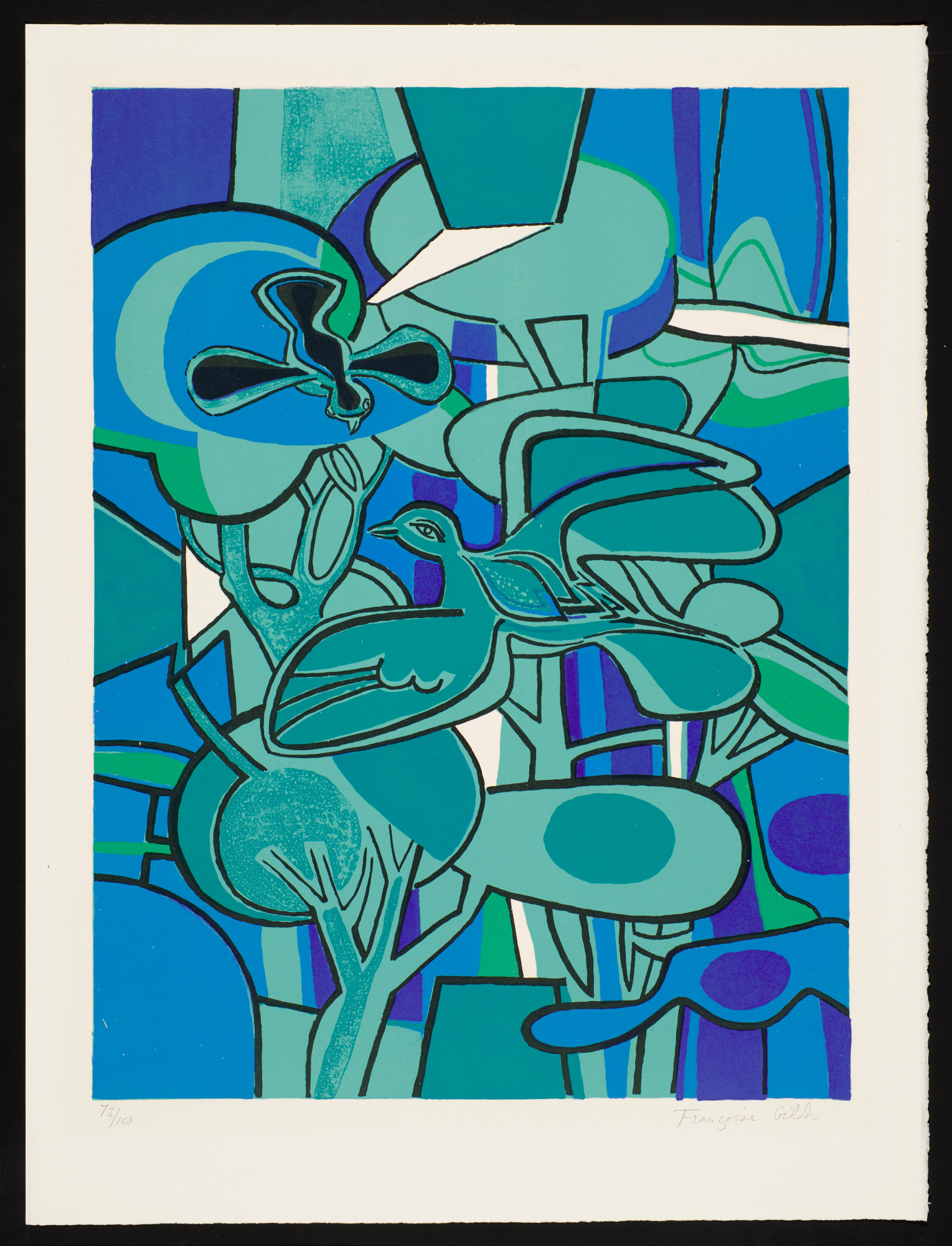 Printed in six colors: turquoise, light blue, deep turquoise, deep blue and dark gray and green