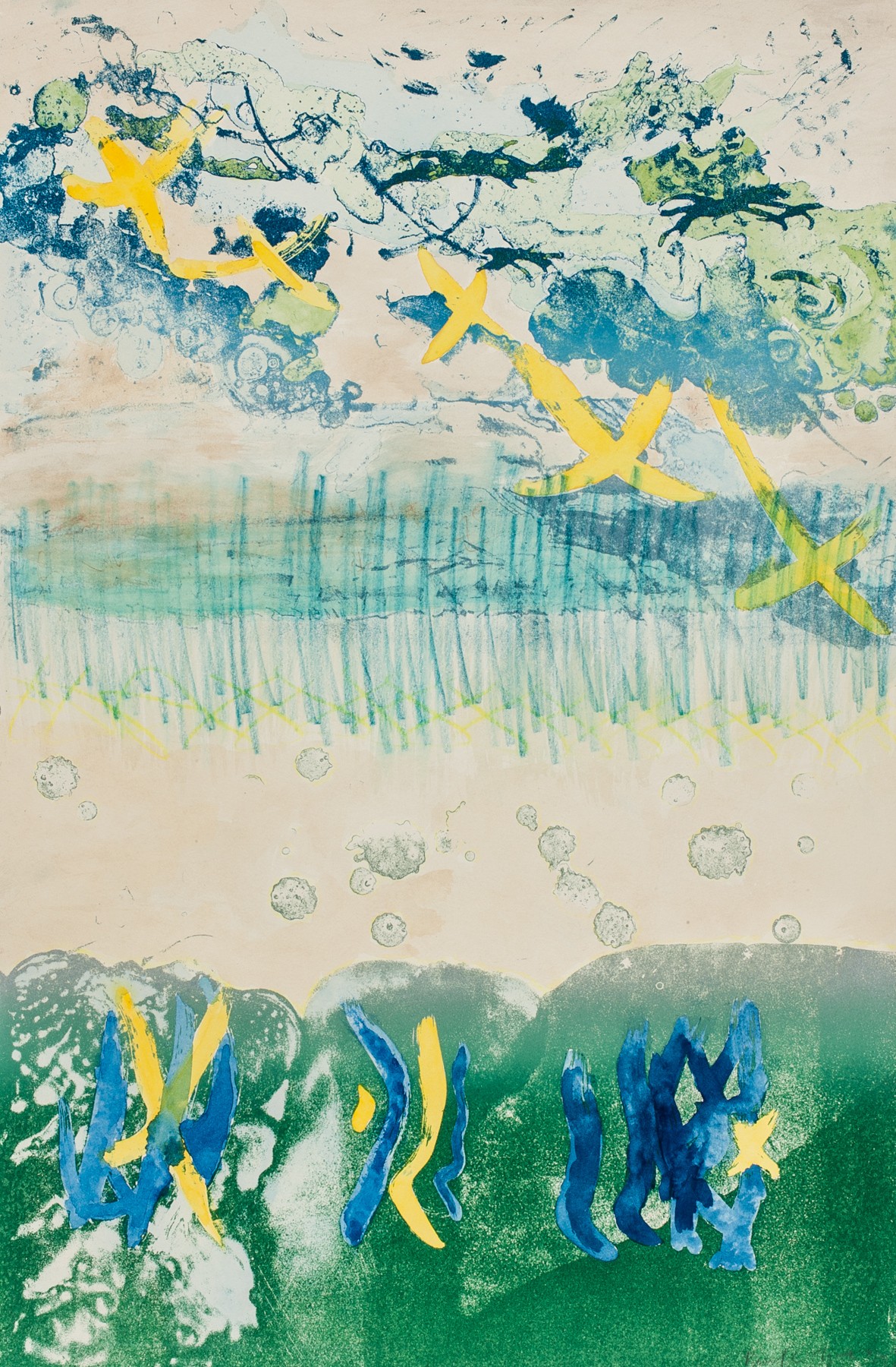 Blend roll Lithograph from Kodak plate with watercolor and colored pencil on Arches Cover Stock