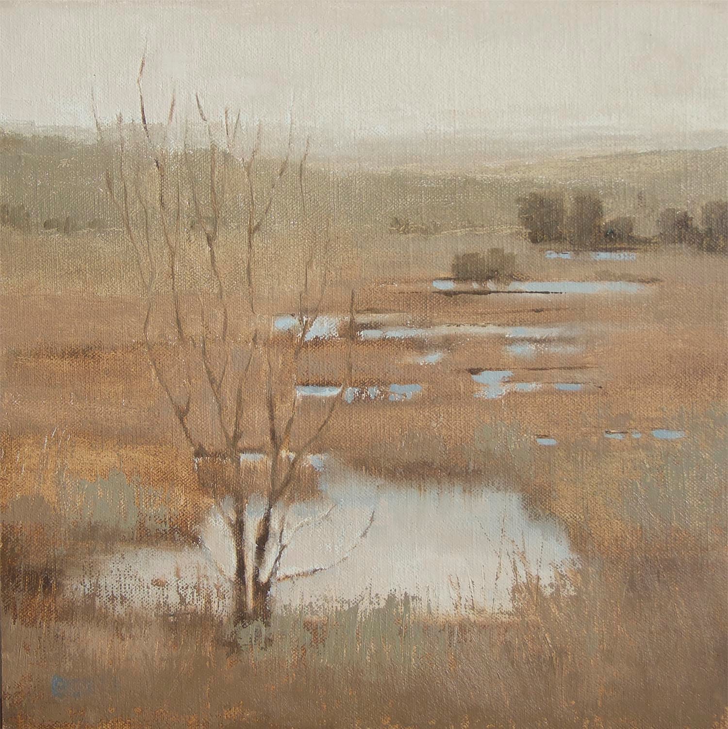 The cascade of water in the flooded field looks like poetry to me. I painted this plein air and wanted to try a studio version with a limited palette. I used Raw Umber, Asphaltum, Payne's Grey, Warm White and Titatanium White. This is a study for a larger version.