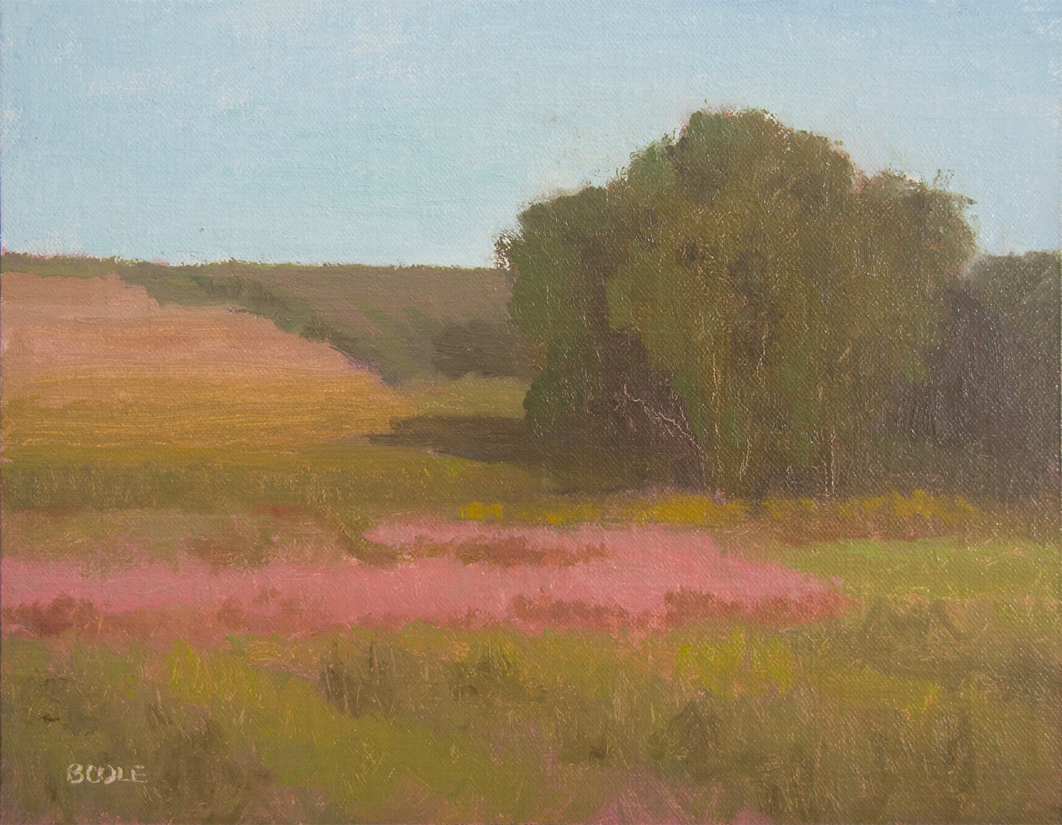 The pink floral plant grows in the dry lagoon and makes the field more than ordinary.