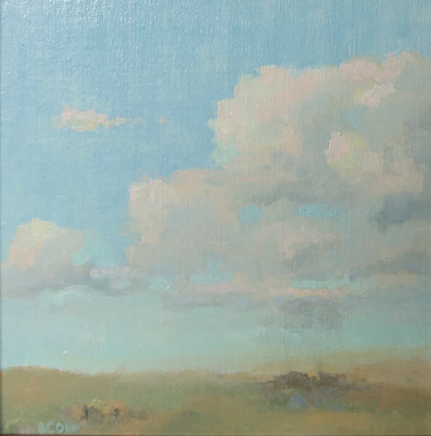 This is part of my exploration into the intersection of music and painting. The glissando is a beautiful sound made by sliding your hand upward across the keys. It seems to me this cloud bank echos the mood and feel of a glissando.