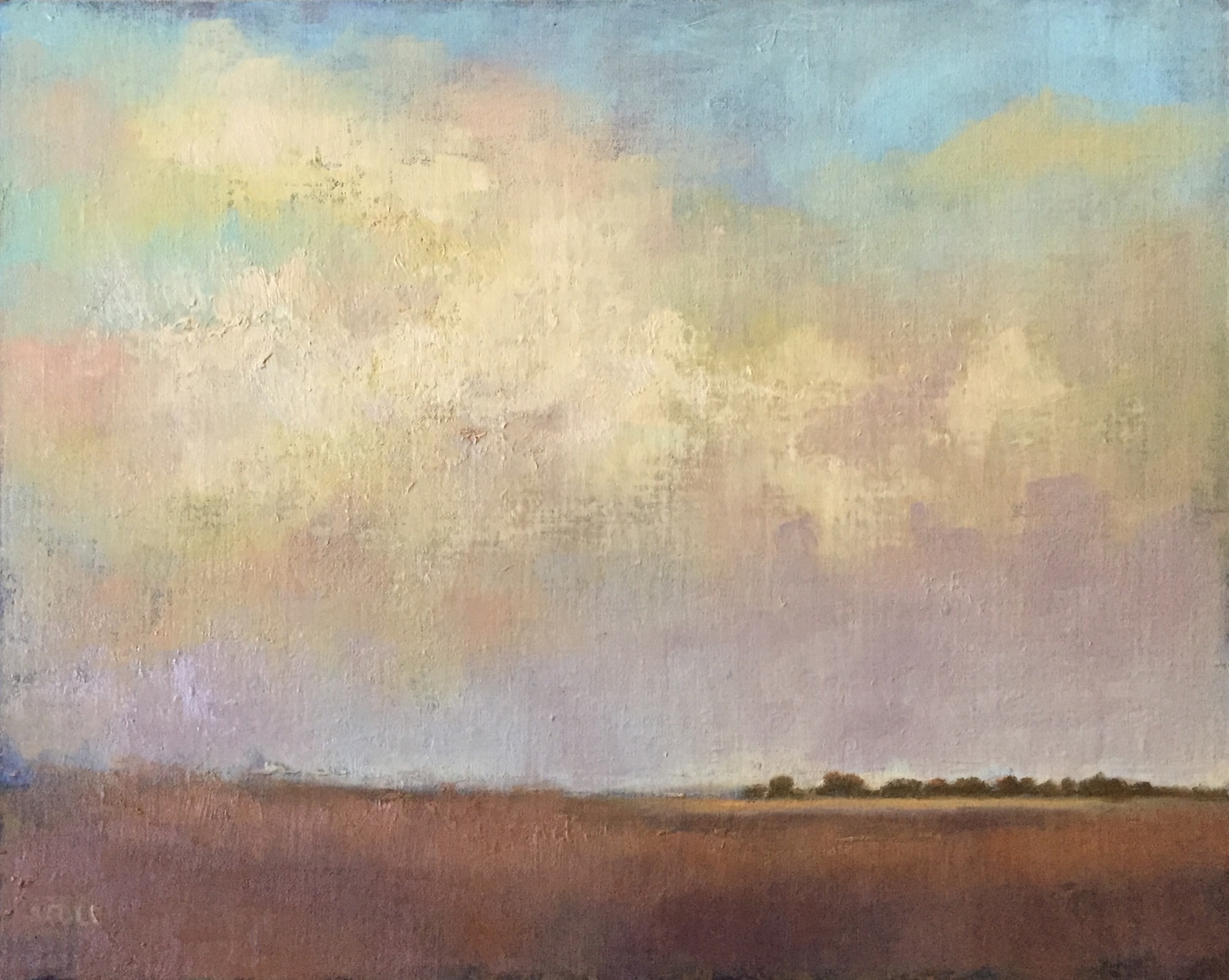 So often the sky lights up right as the sun is going down. This is my impression of that moment, inspired by a photo taken at sundown overlooking Cramer's Canyon east of Merna.