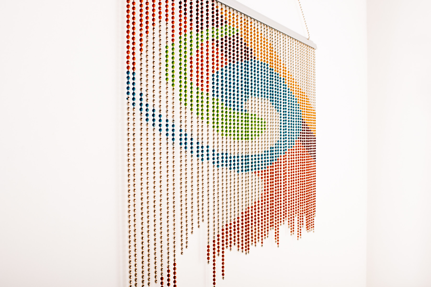 Modern Artwork with a Balance of Delicate and Industrial. Chicago artist specializing in site specific projects and installation using industrial ball chain.