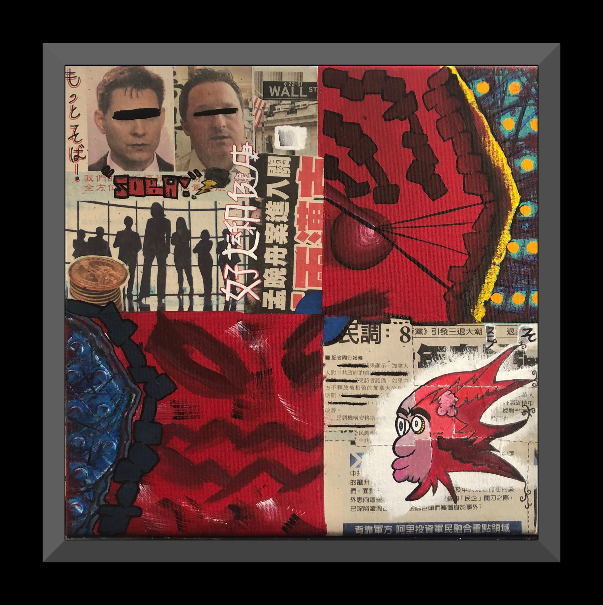 This piece shows the connection between our economic leaders, and how their naughty, greedy attitude towards money influences future generations to do the same. The cycle continues. 12"X12"