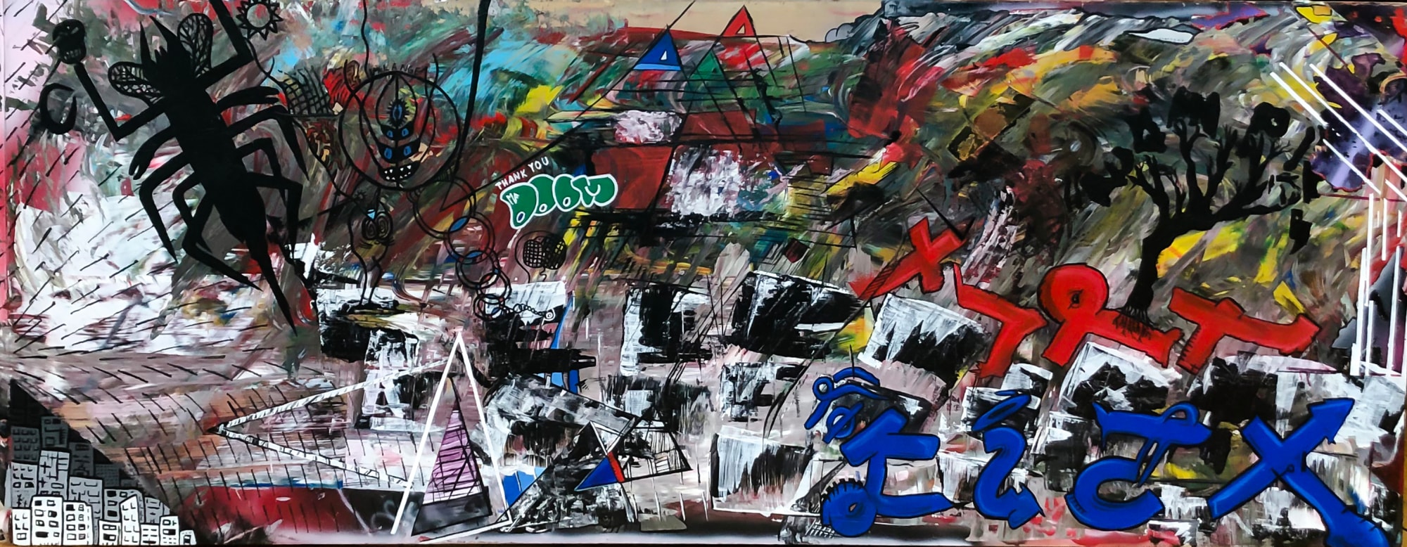 The title itself was inspired by Spice(Melange.) Melange is a fictitious drug from the "Dune" novel series. Melange is known to lengthen the user's life, broaden their awareness, and leaves the user with iconic "blue with blue" eyes. There is also an homage to the late rapper MF DOOM, who passed away late last year. MF DOOM continues to be one of my biggest creative inspirations. This piece contains all of the usual themes/styles, but taken to the next level. The painting is a blend of abstraction, geometry, street art, punk rock, and a smidge of the avant garde.
