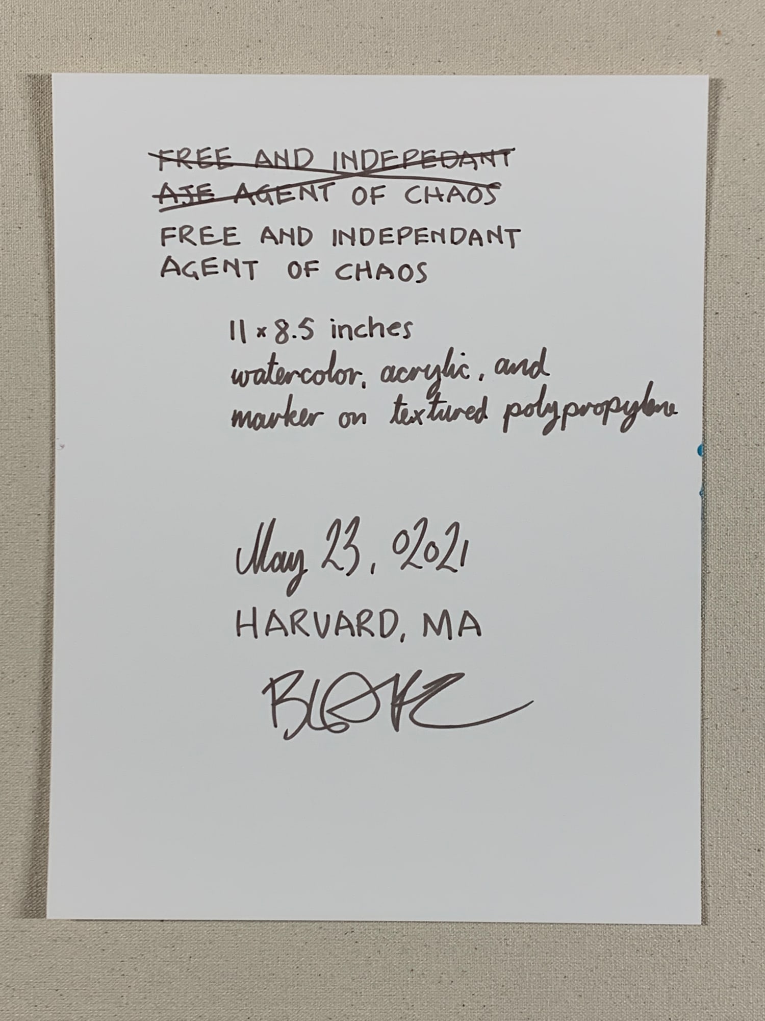 • Watercolor, Acrylic, and Sharpie on textured polypropylene