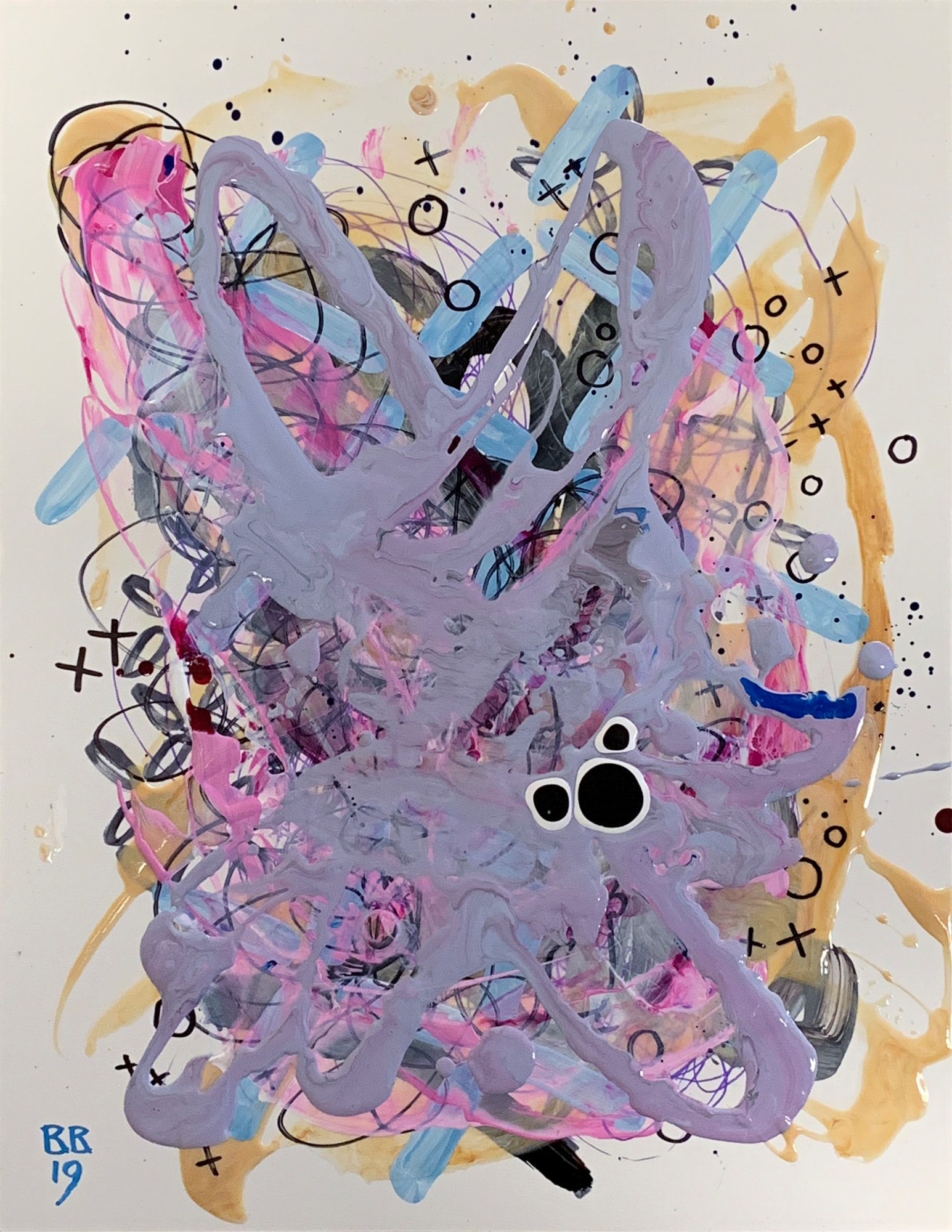 acrylic, ballpoint pen, and Sharpie on textured polypropylene