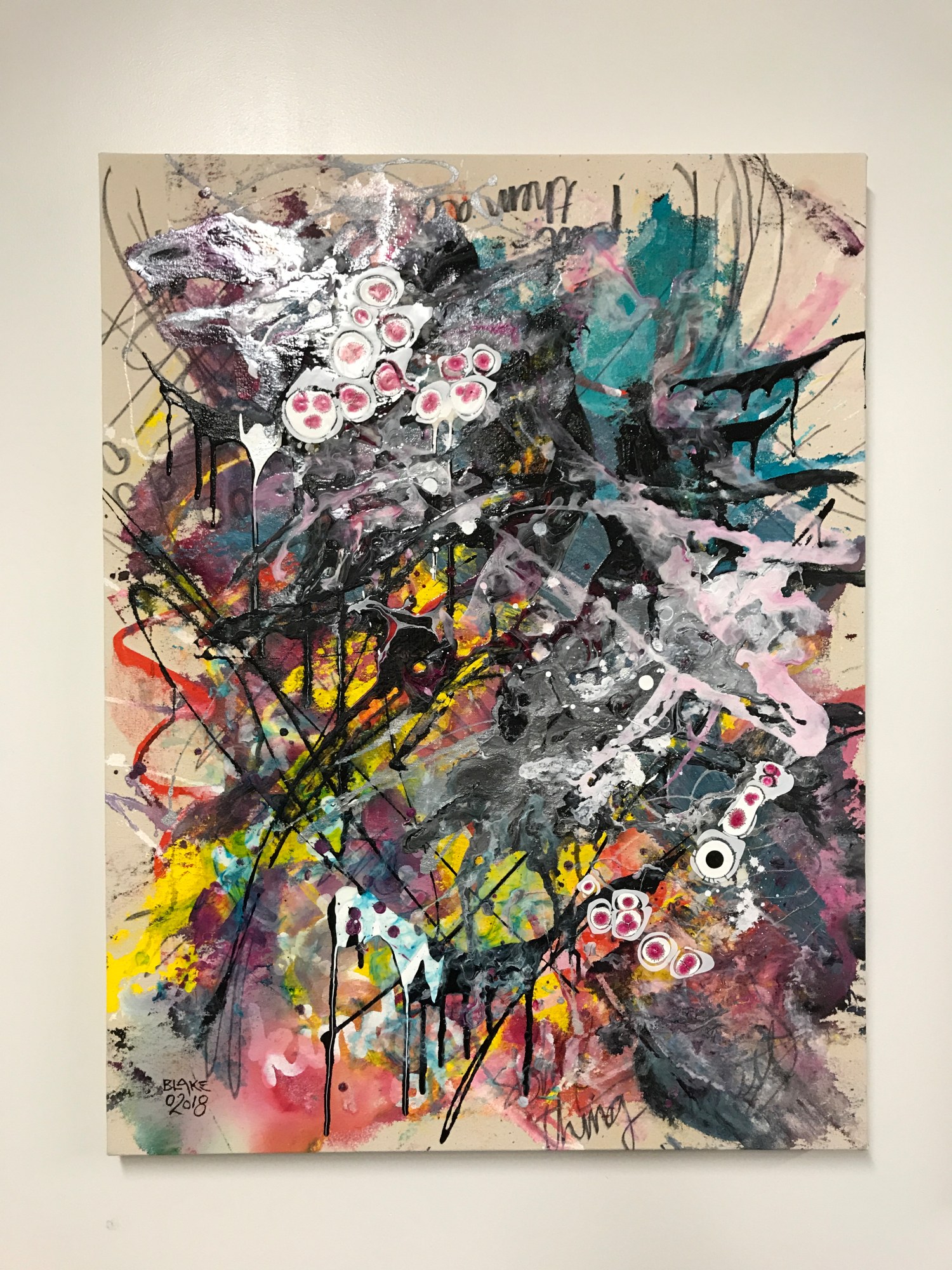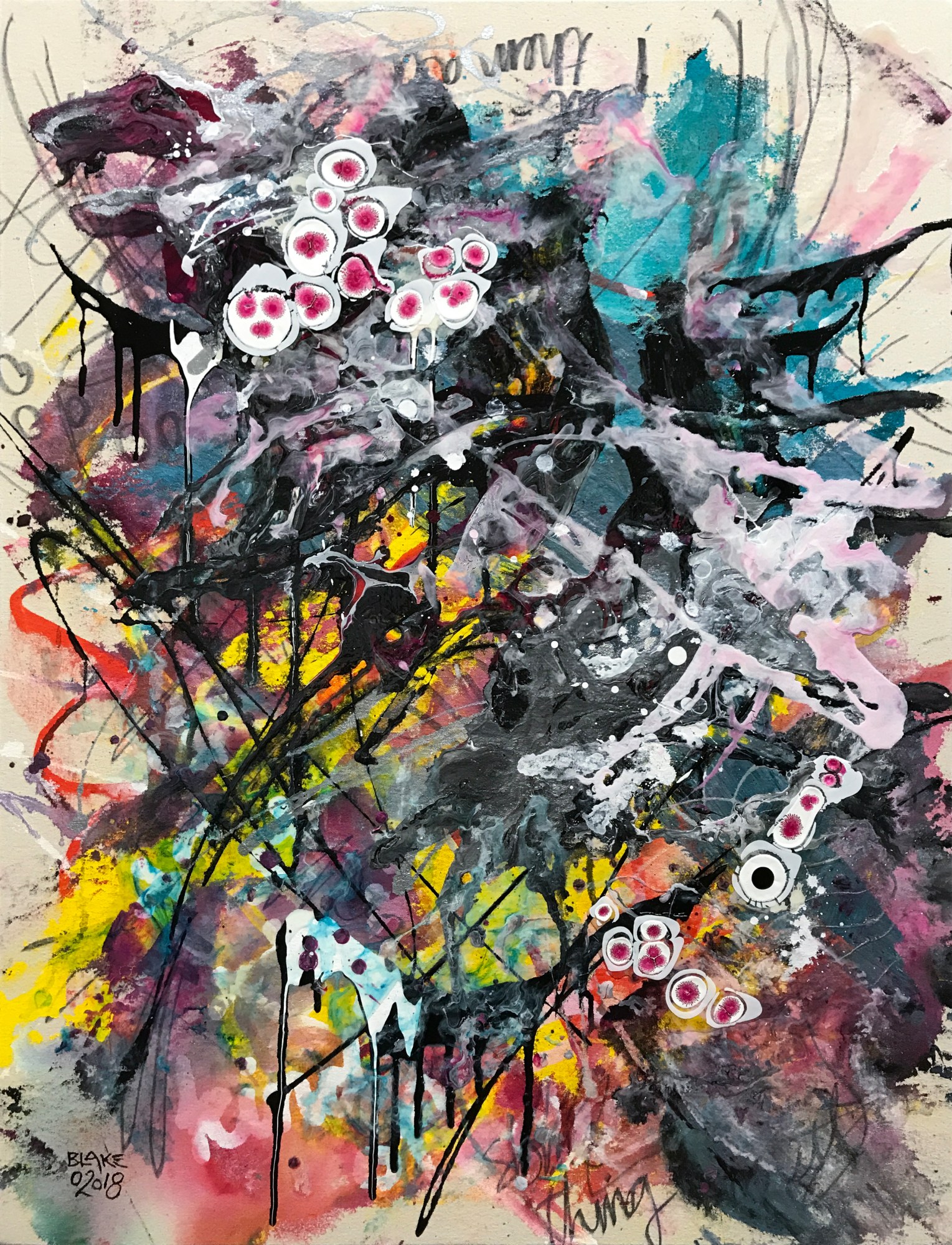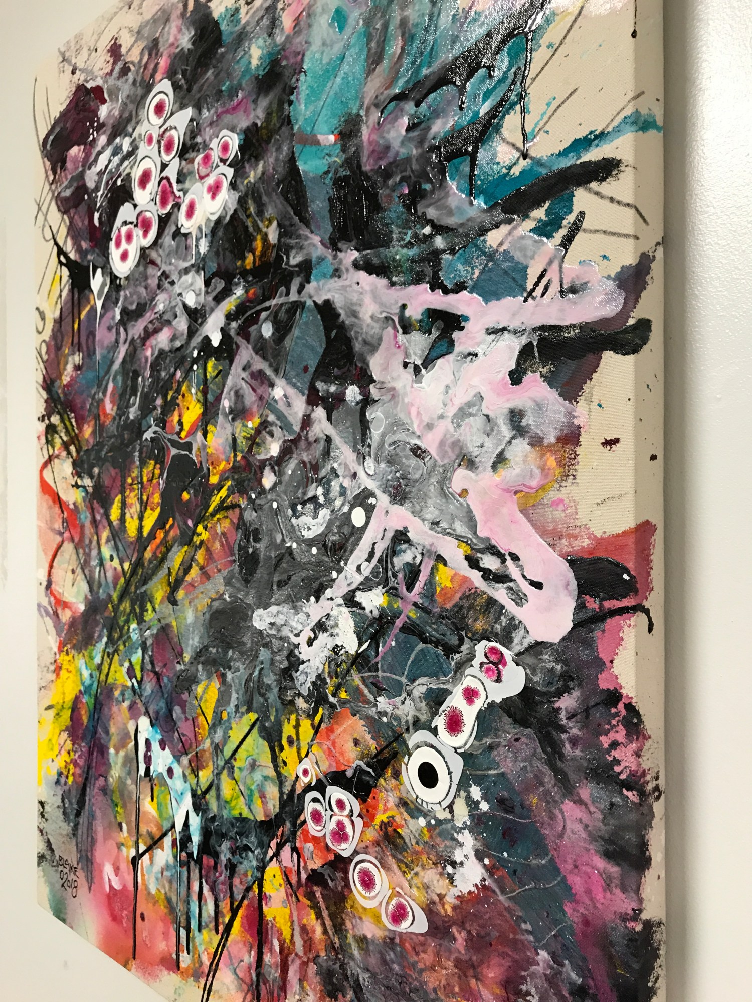 This is a bold and expressive abstract painting which I created in my studio in Lowell, MA in July of 2018. It is meant as a meditation on the meaning of life and our place as thinking beings in the cosmos. It is a pretty thing to look at, and I hope that it will make you pause and empty your mind of linear thought for a moment and simply exist within its world.