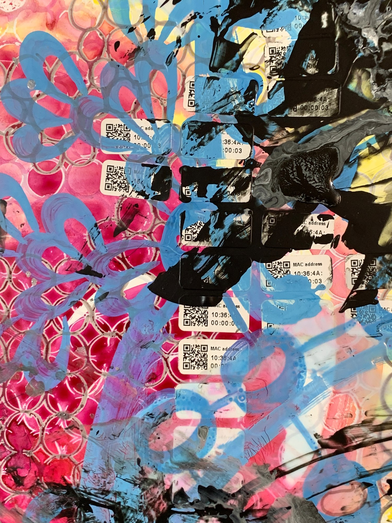 • Watercolor, Acrylic, Sharpie, and Stickers on textured polypropylene