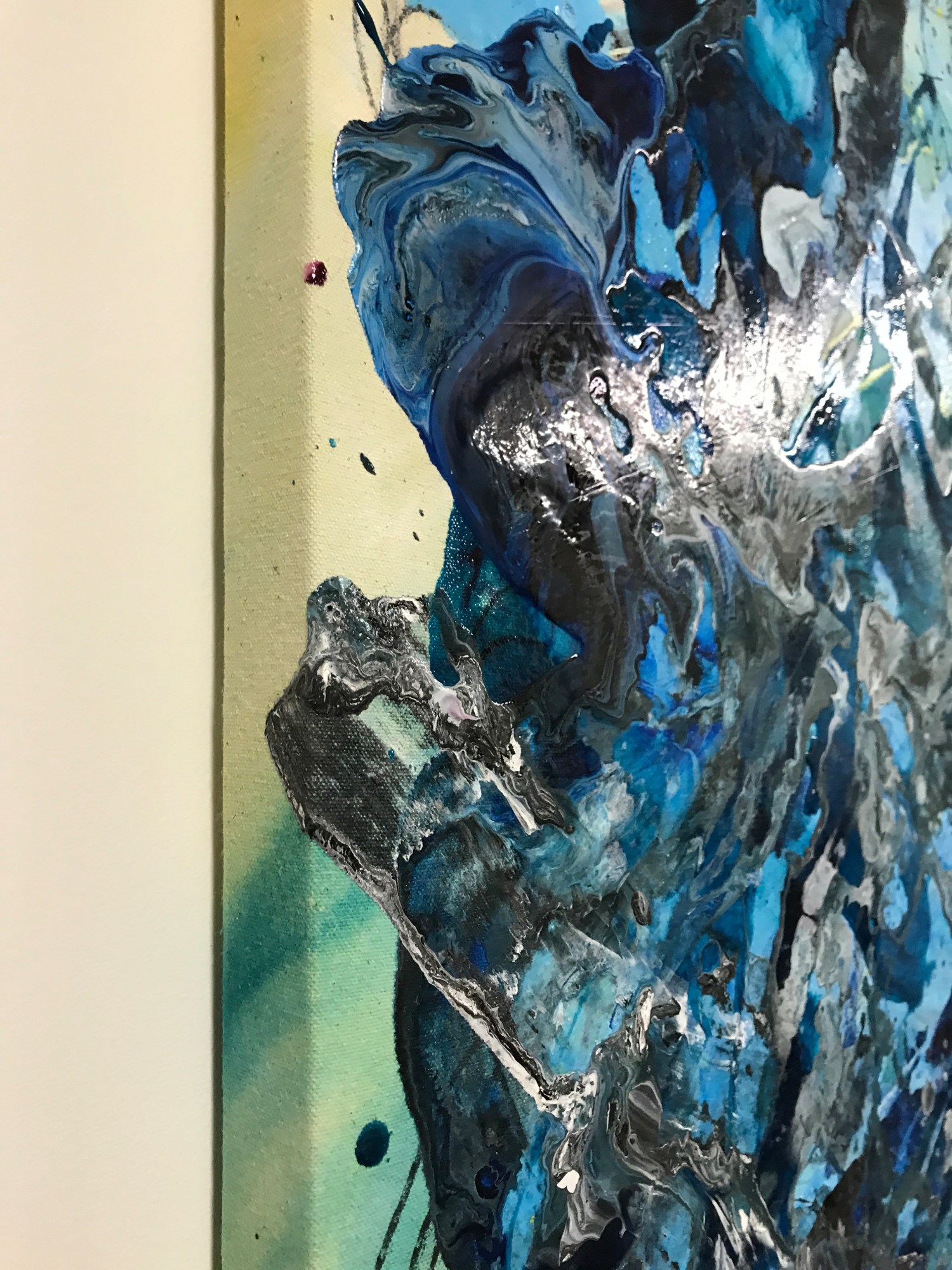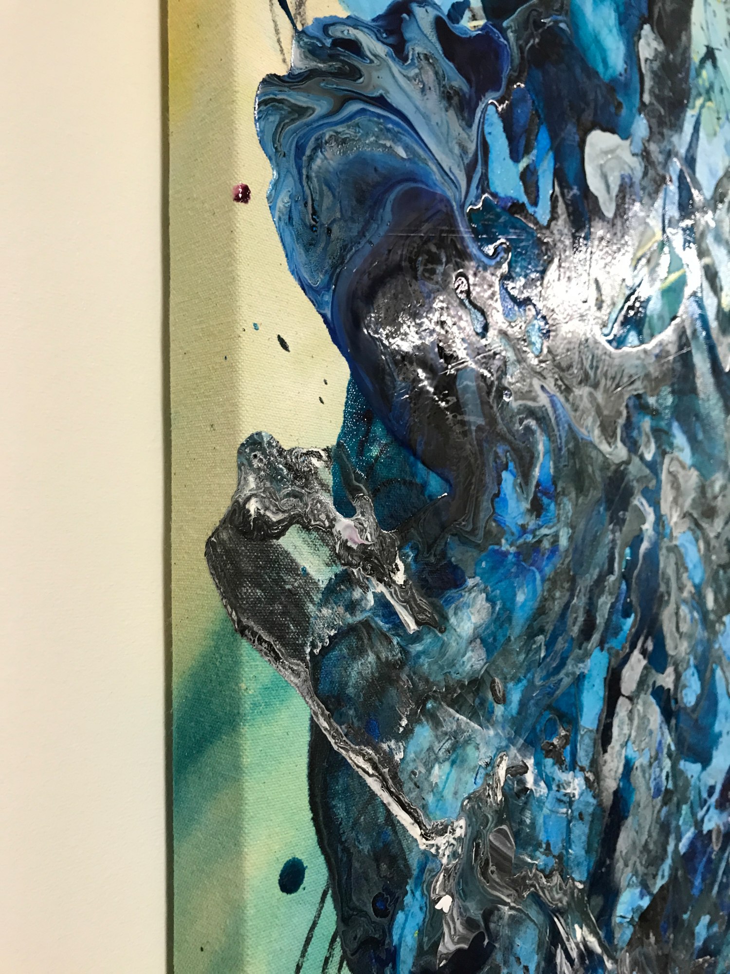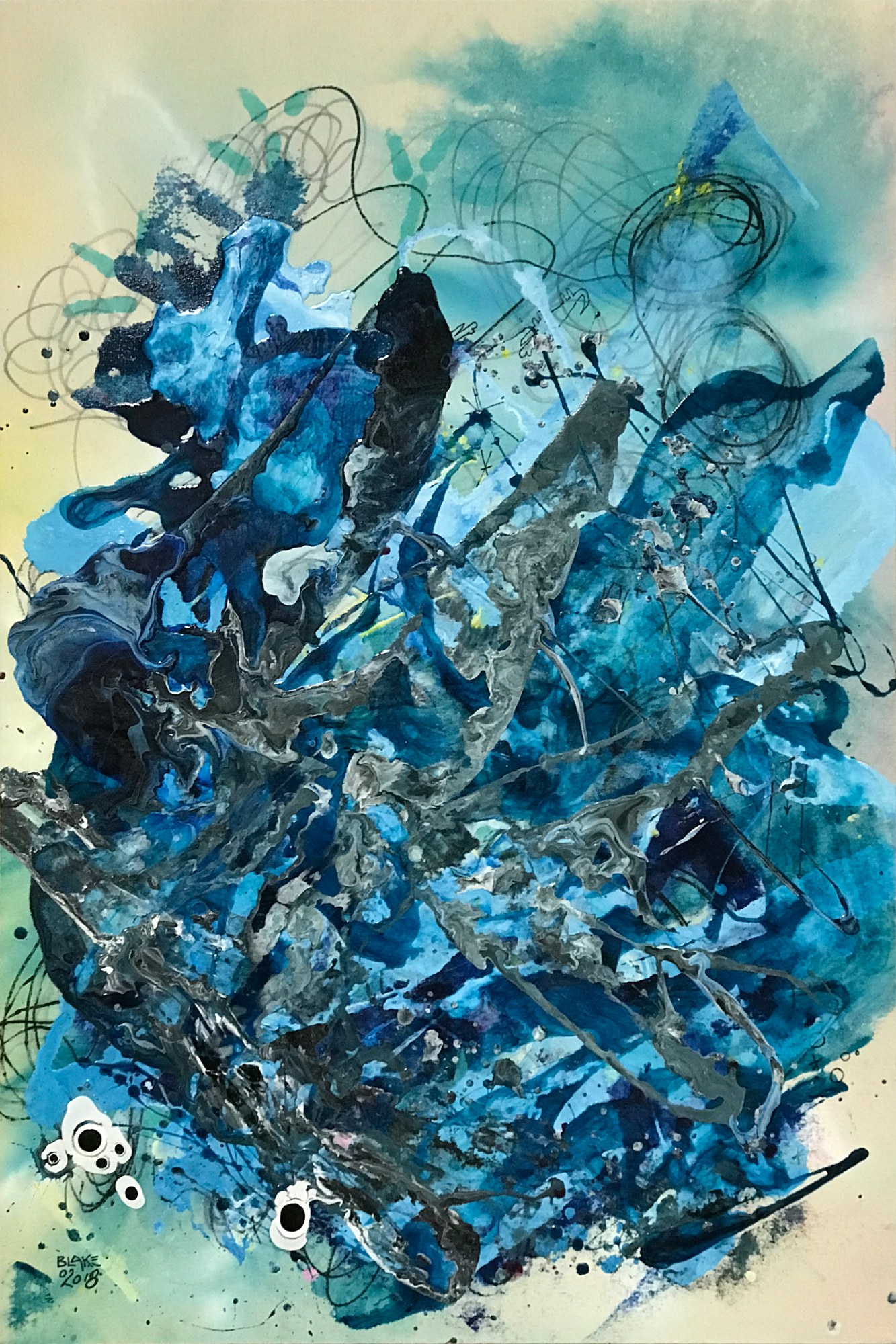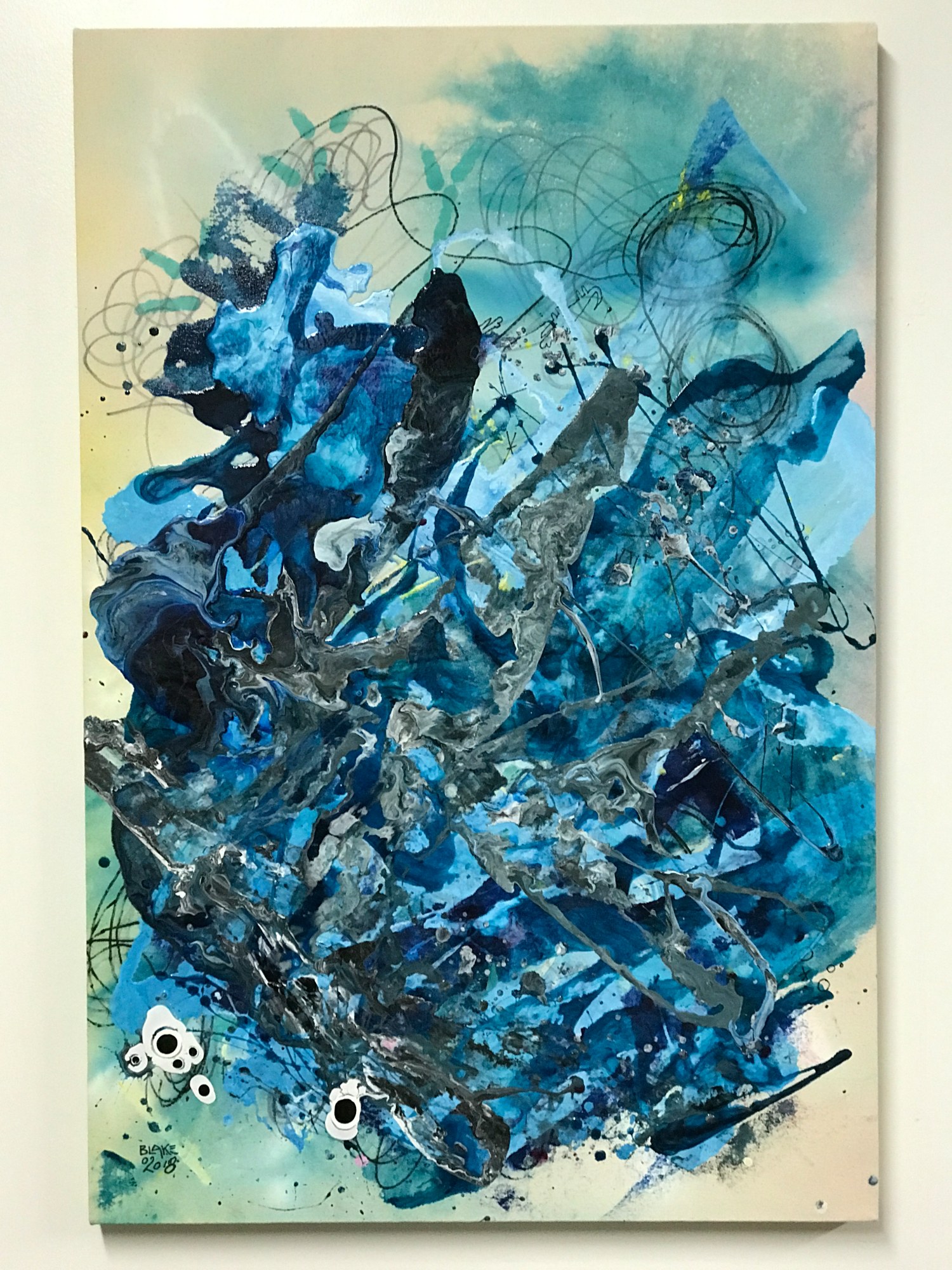 You wanted blue, you get blue. This painting is blue. And also it has some other stuff going for it. There is some green. There is black, there is white. Etc. But you know what? This was something of an exercise, and I know you love it. You are all always telling me I put too many colors into all of my paintings, so I said, you know what? I will make a painting that only has one or two colors in it.