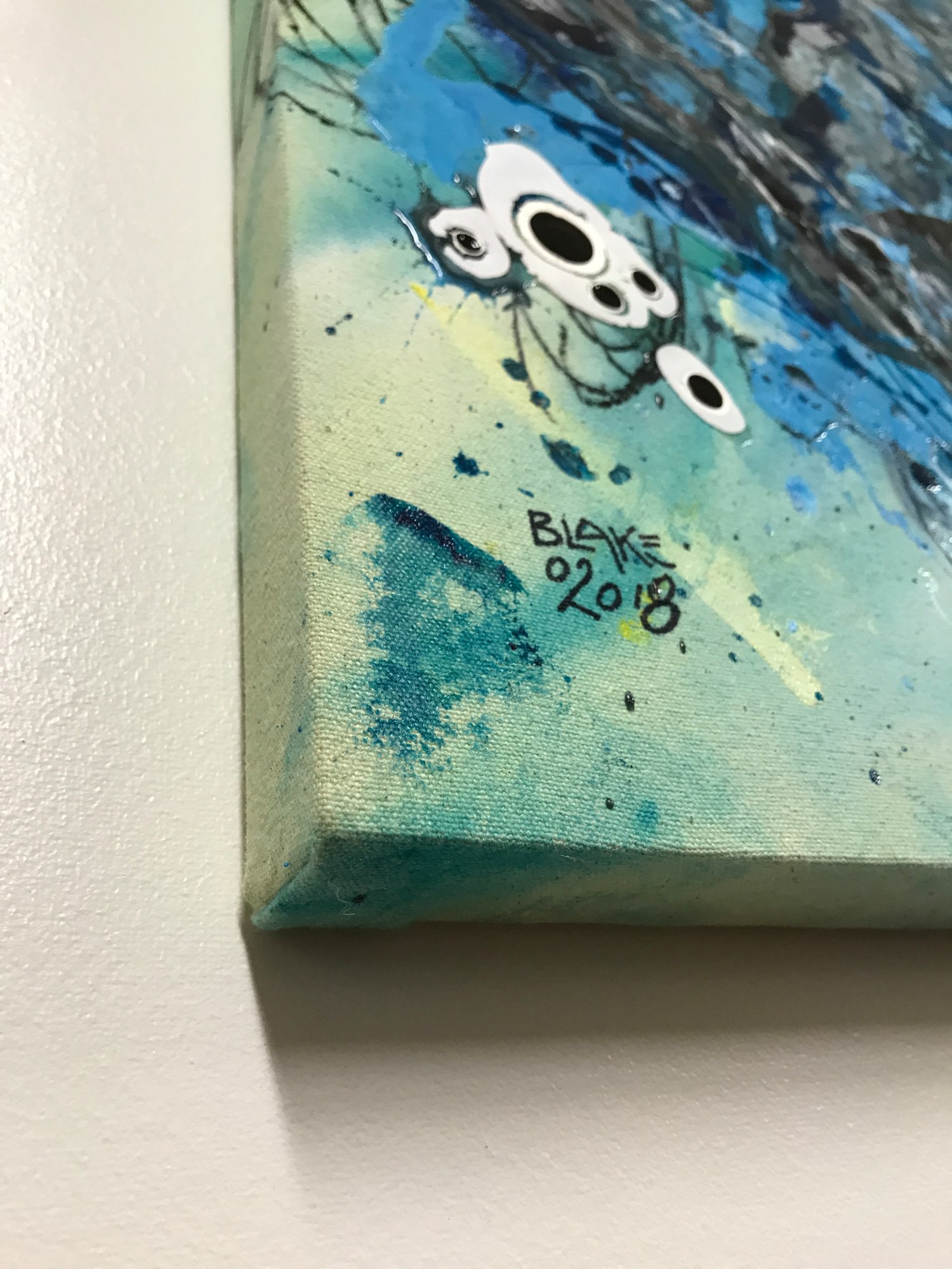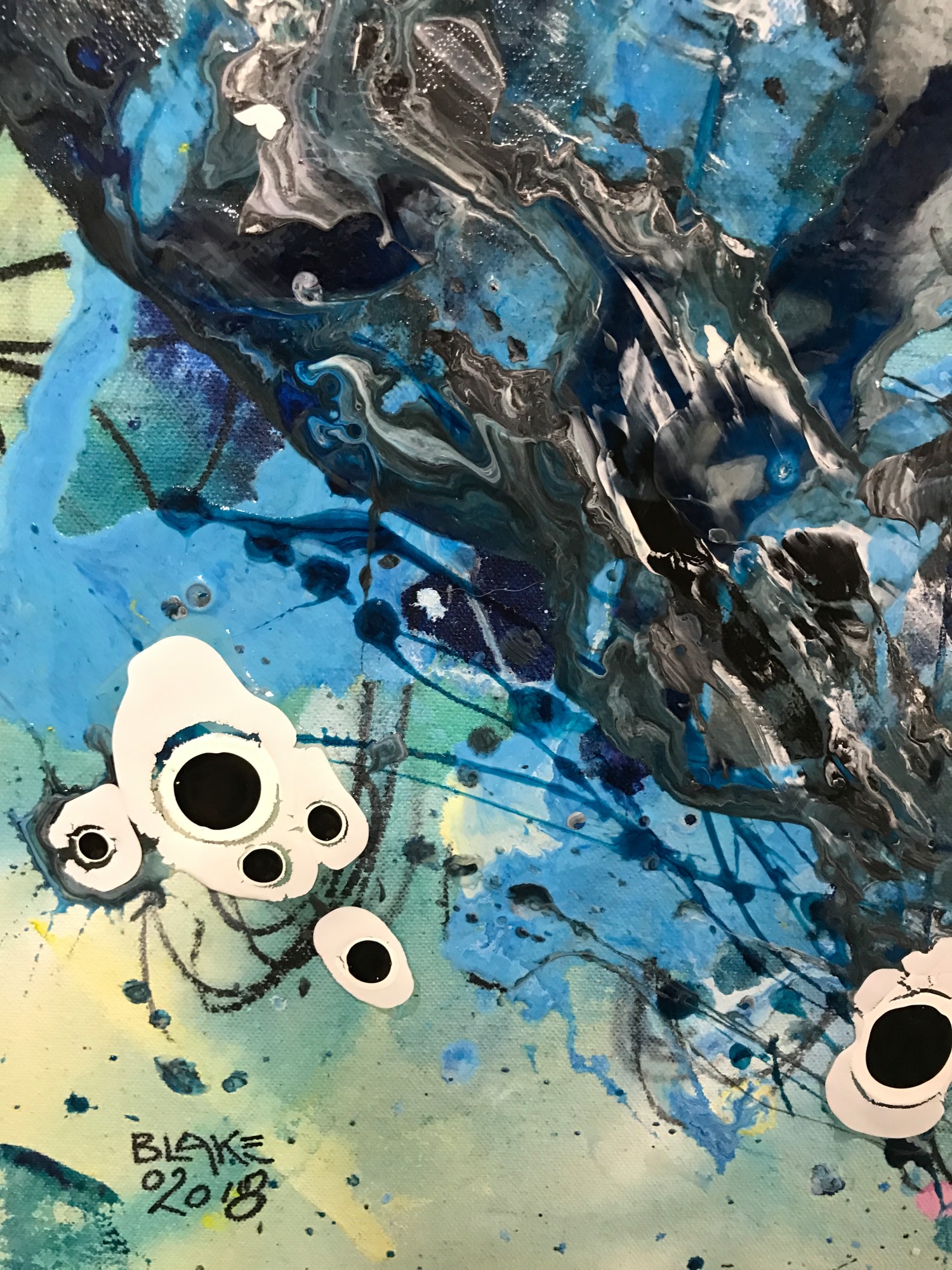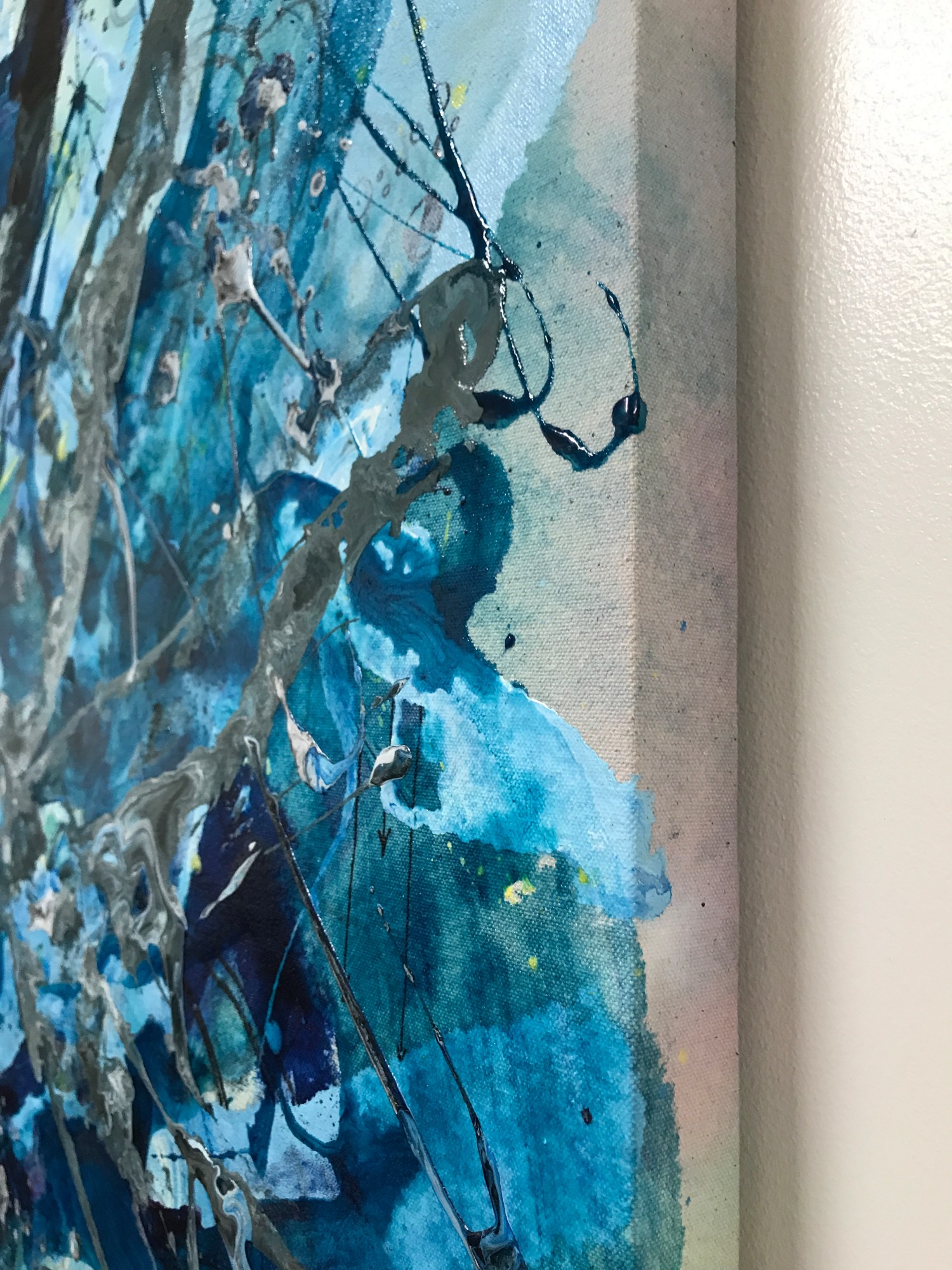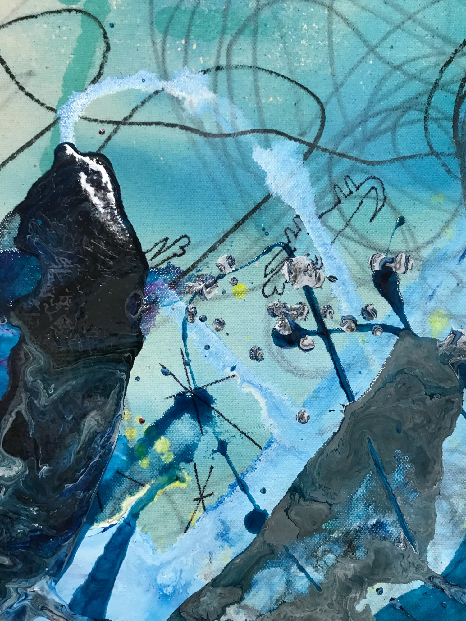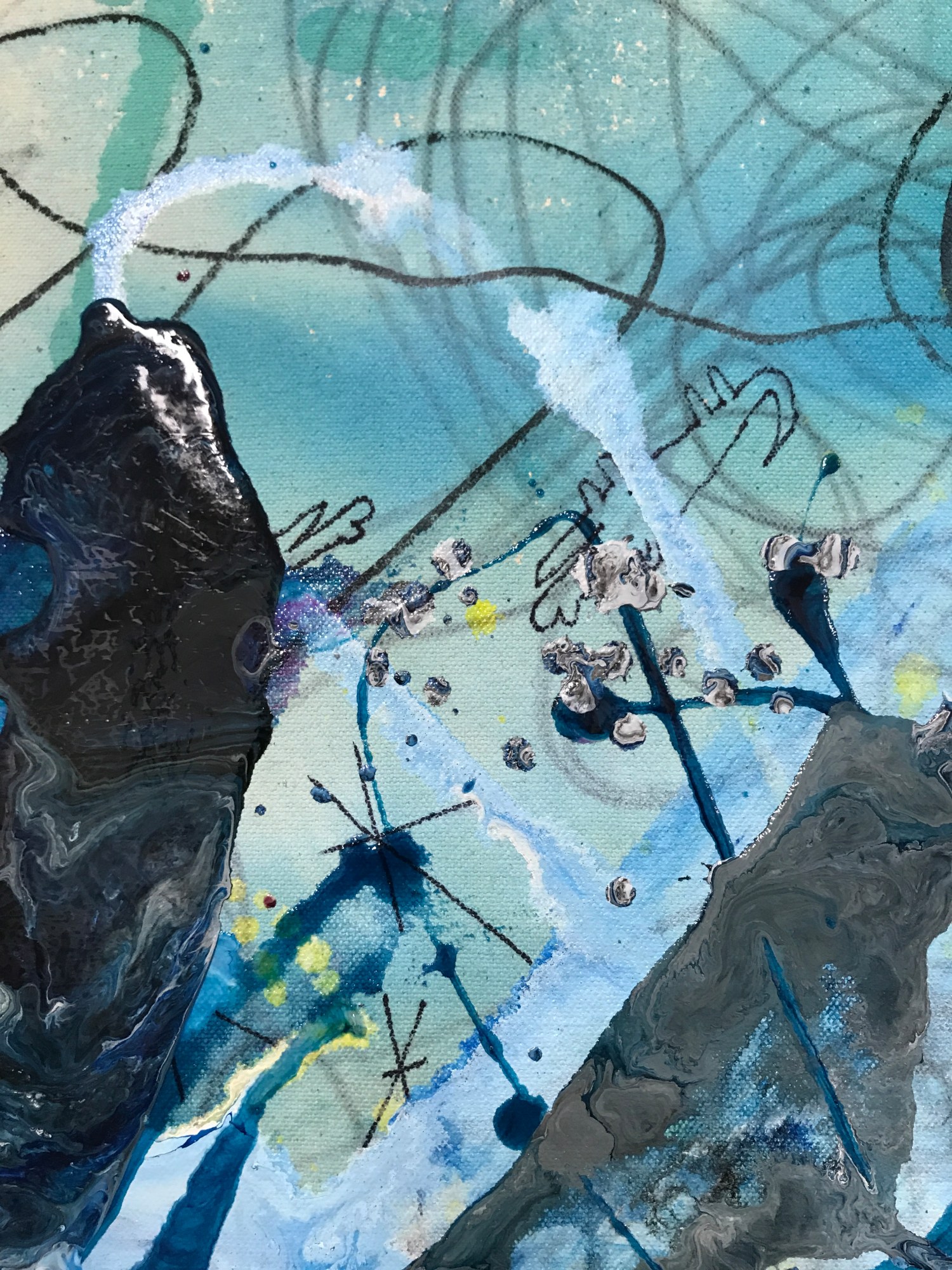 You wanted blue, you get blue. This painting is blue. And also it has some other stuff going for it. There is some green. There is black, there is white. Etc. But you know what? This was something of an exercise, and I know you love it. You are all always telling me I put too many colors into all of my paintings, so I said, you know what? I will make a painting that only has one or two colors in it.