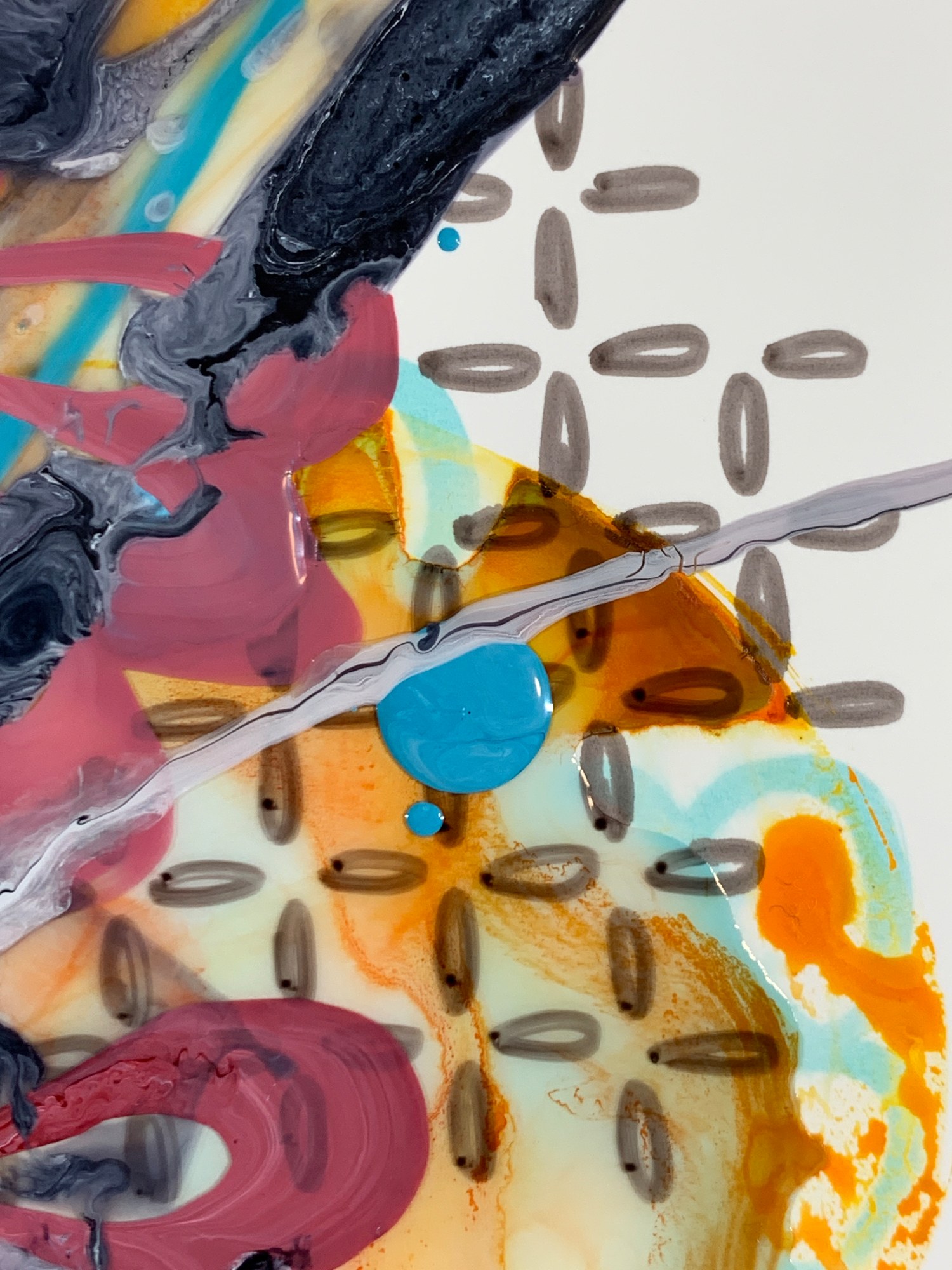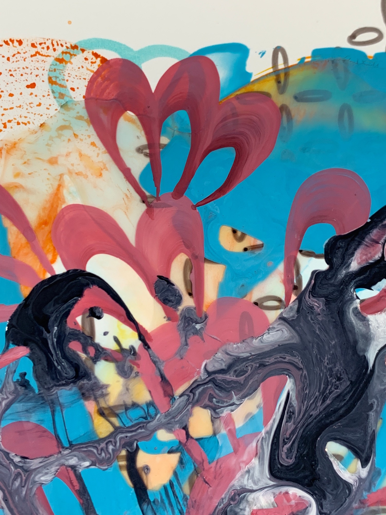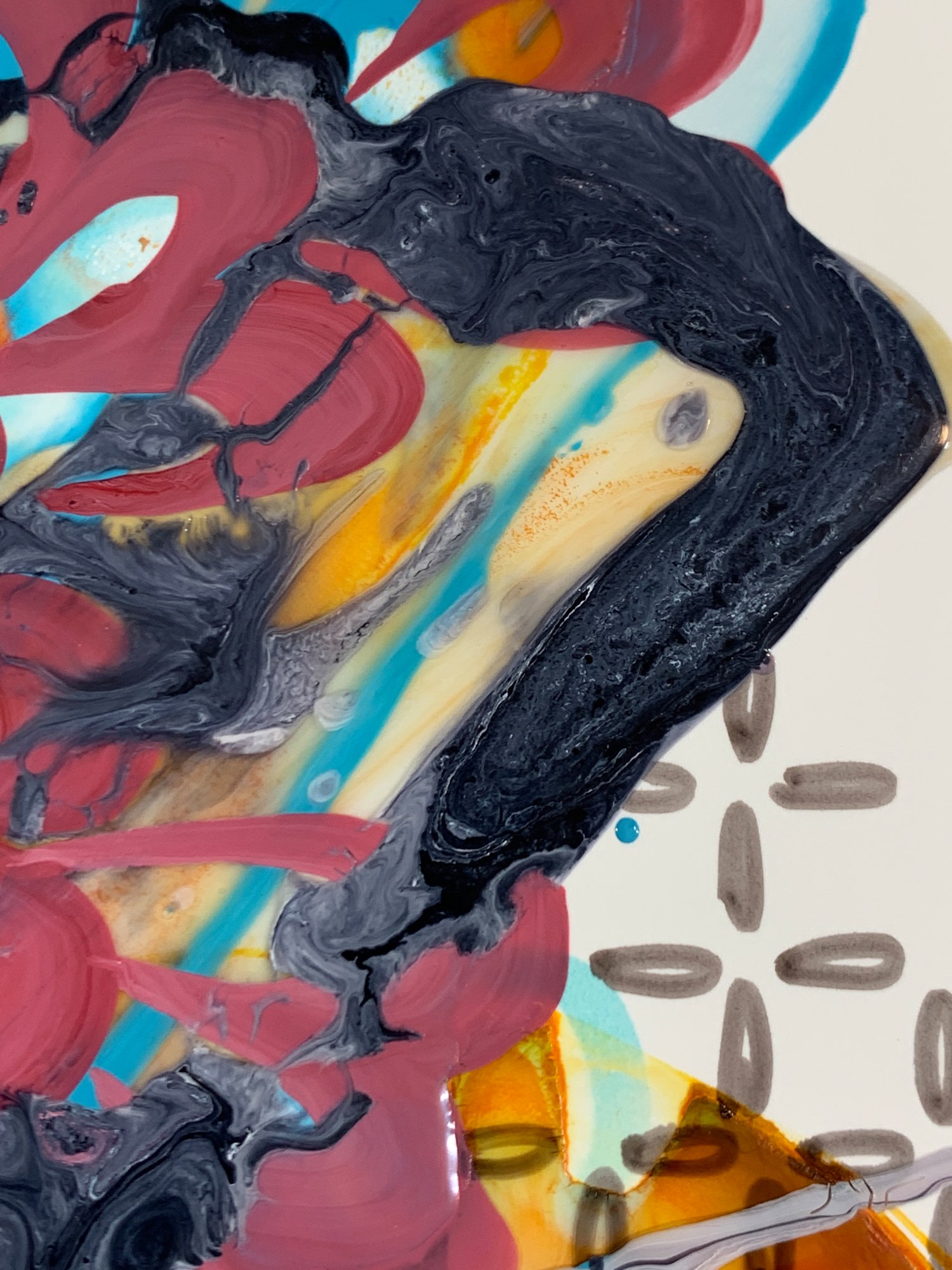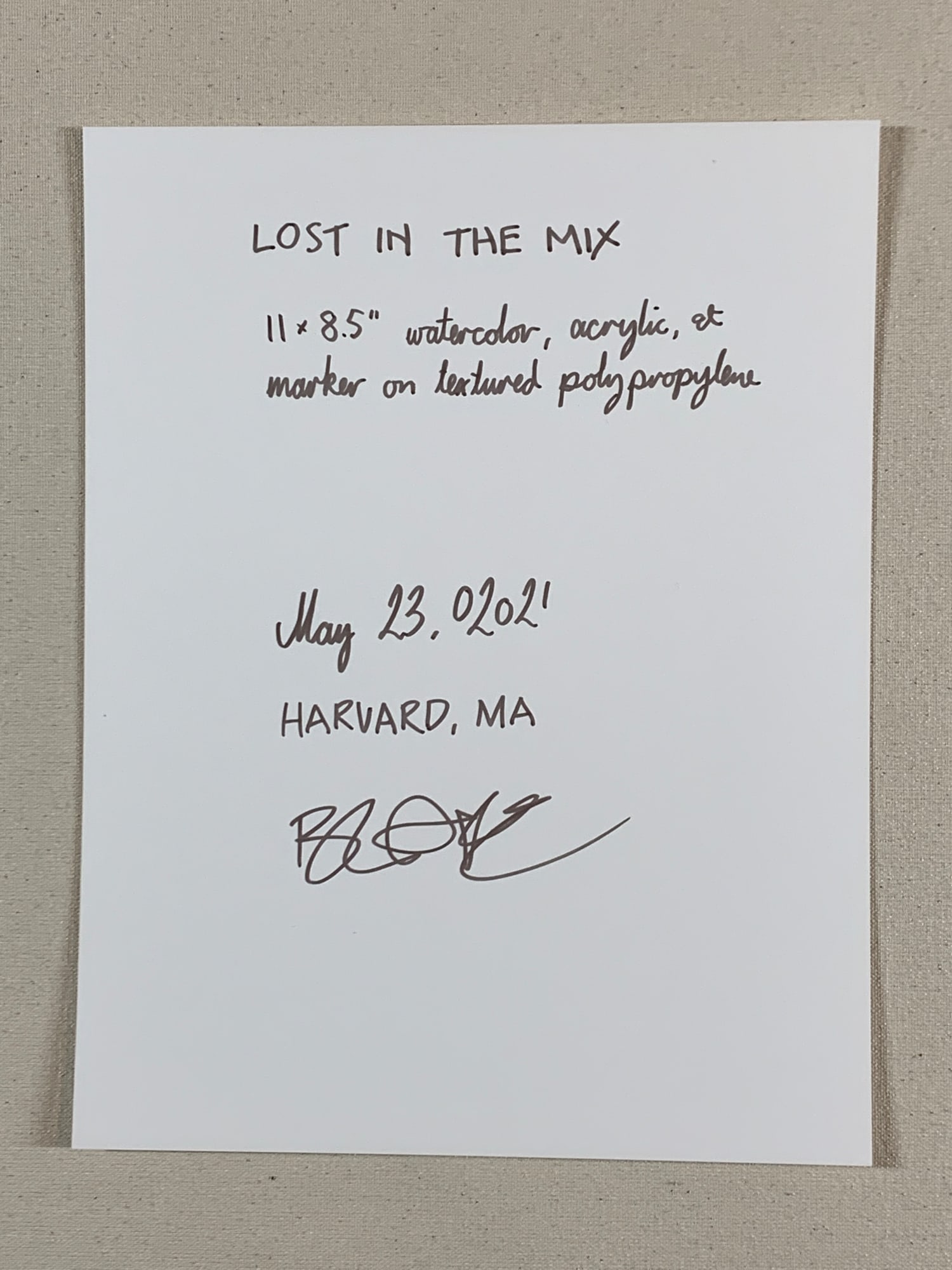 • Watercolor, Acrylic, and Sharpie on textured polypropylene