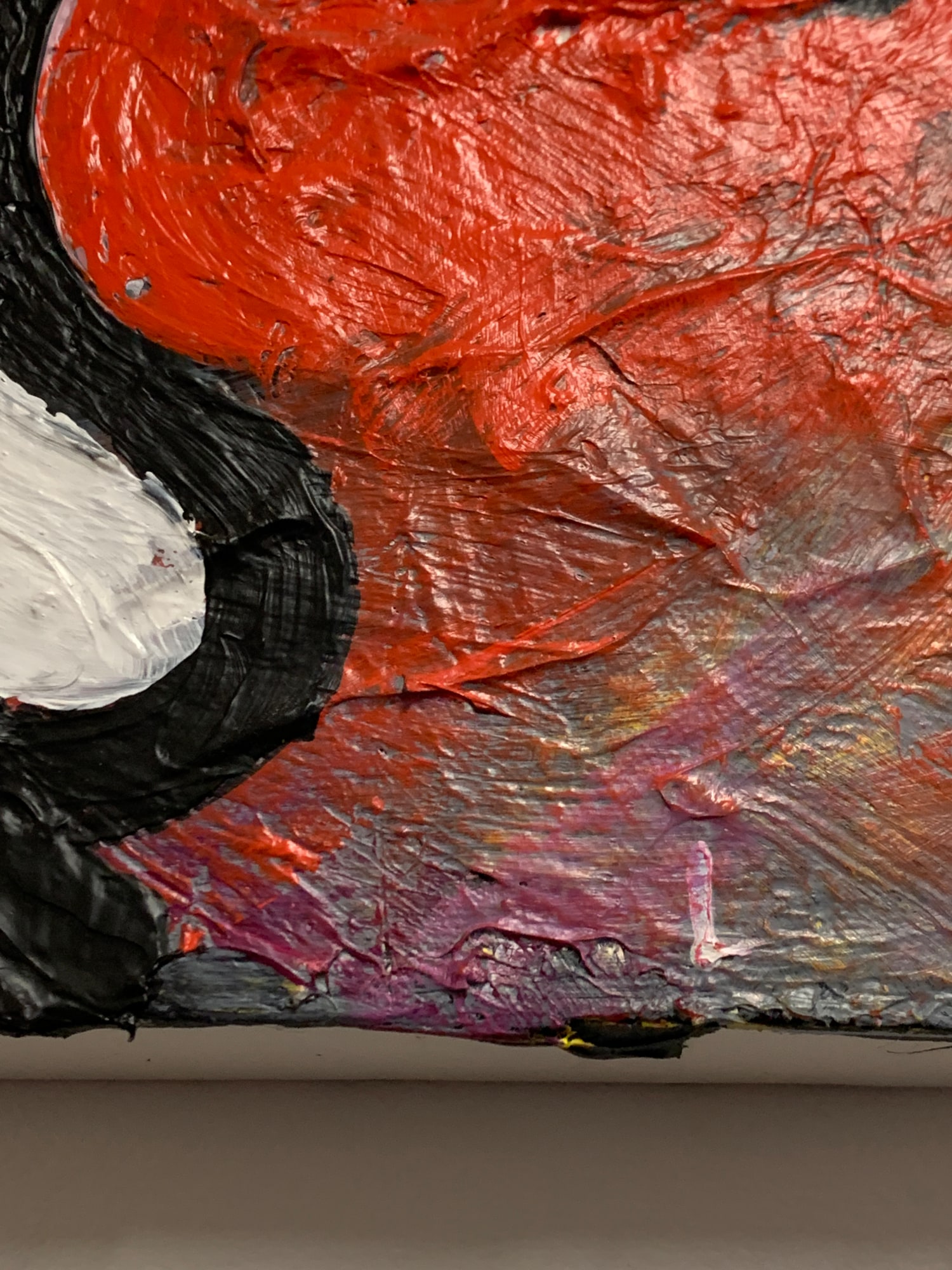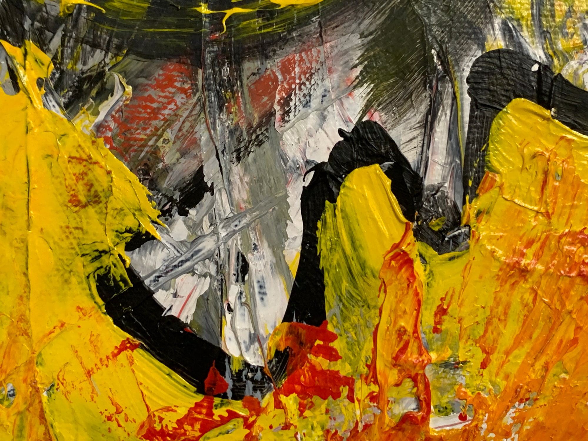 This is a heavily built up abstract painting in acrylic on canvas. The bold bright colors really have a lot of texture.