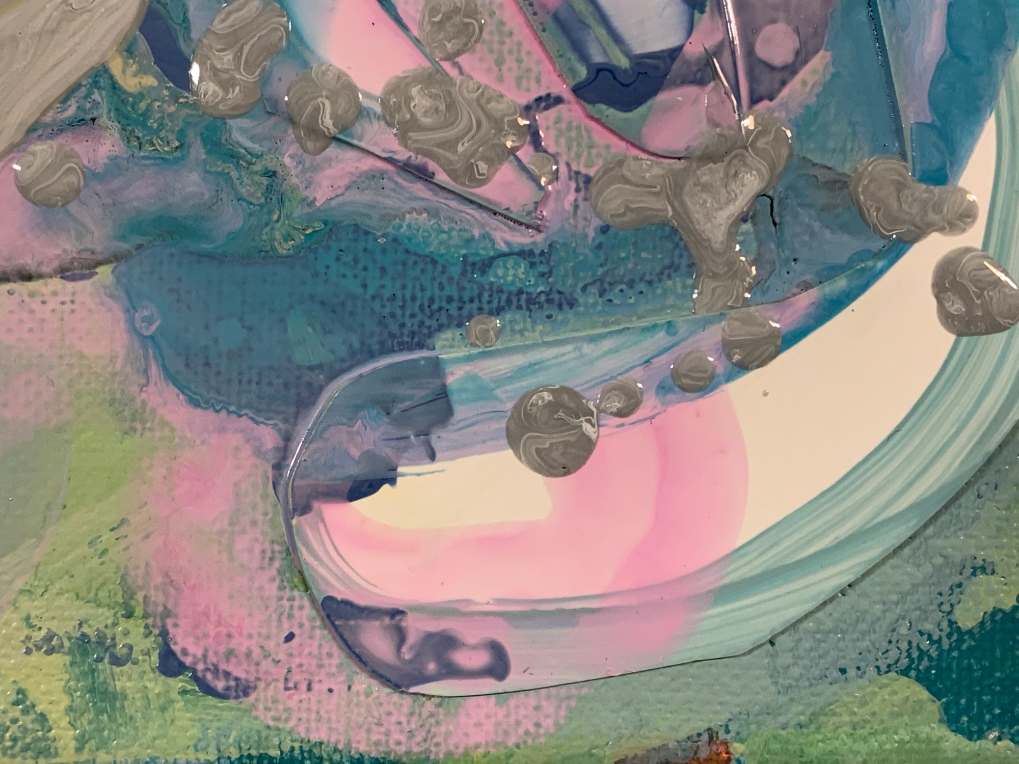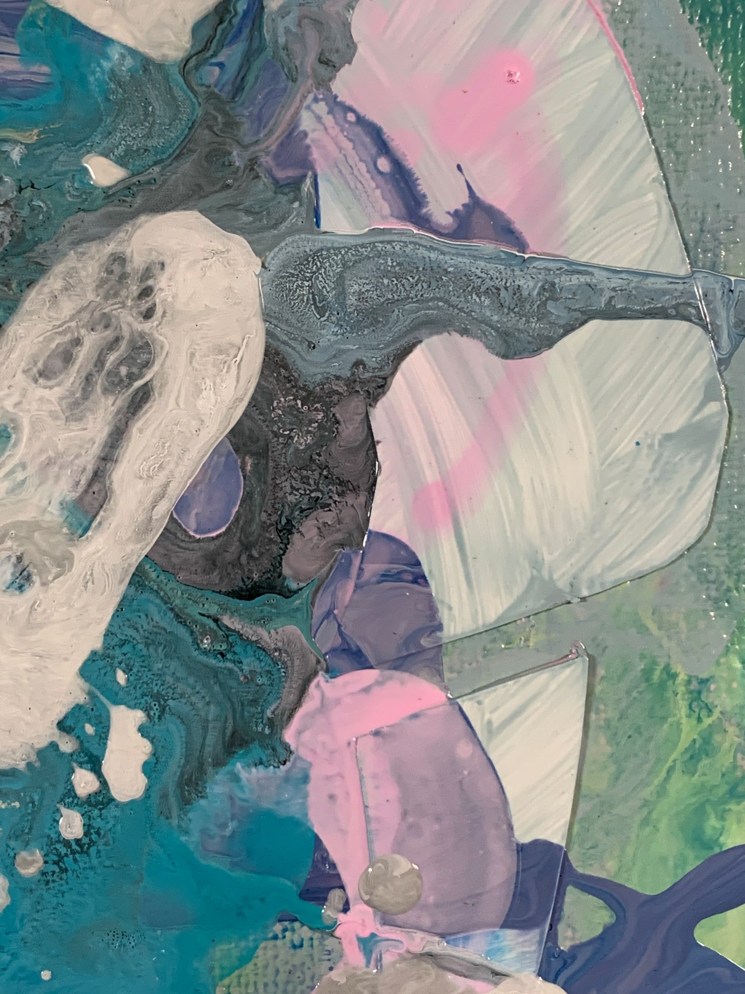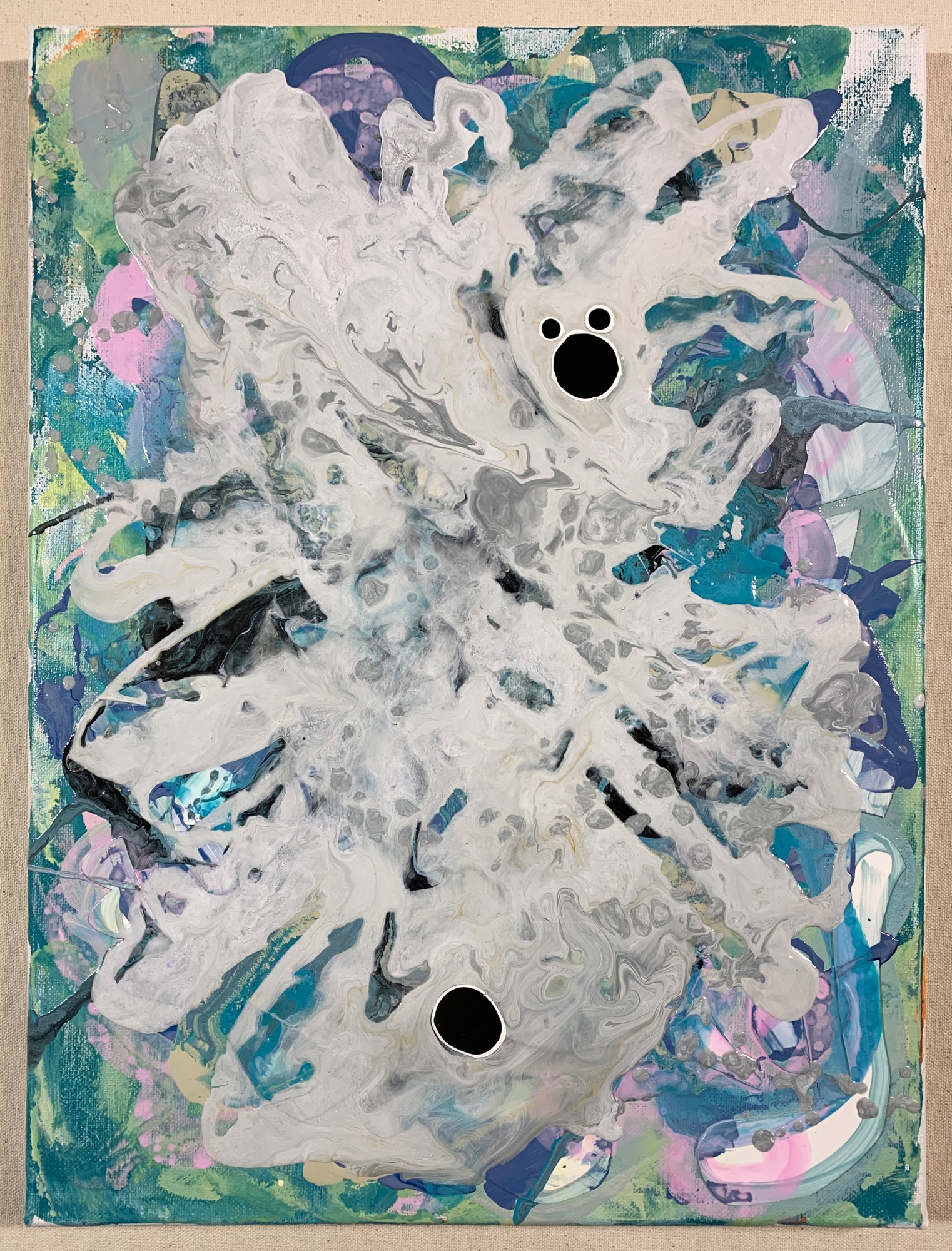watercolor, acrylic, collage, and Sharpie on canvas