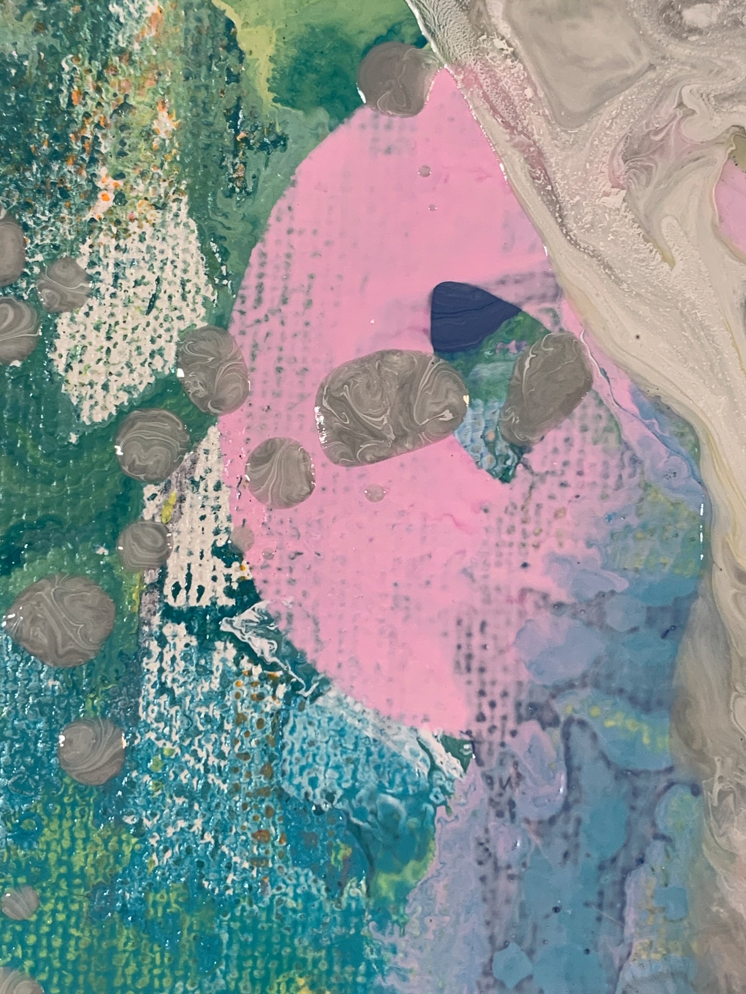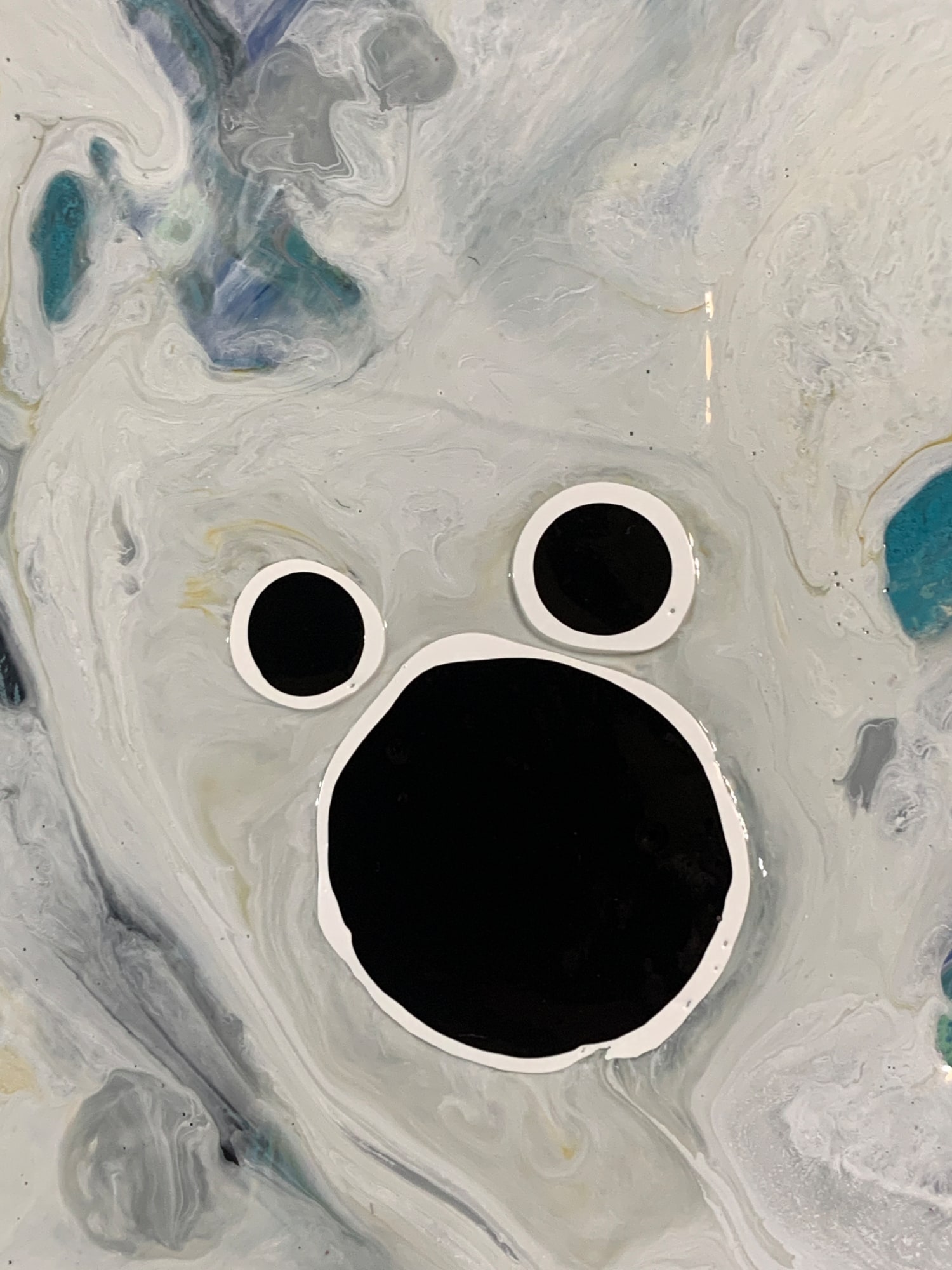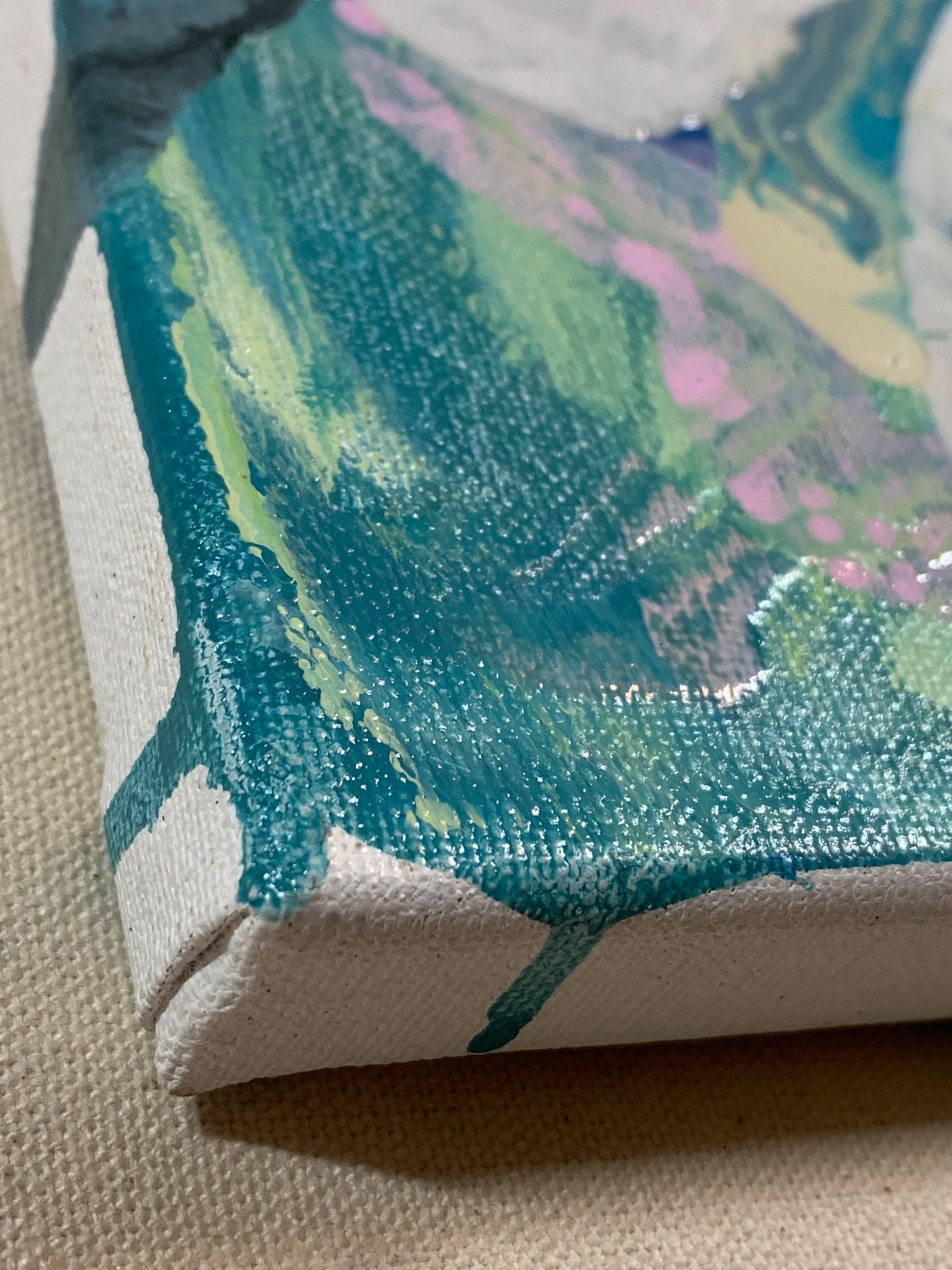 watercolor, acrylic, collage, and Sharpie on canvas