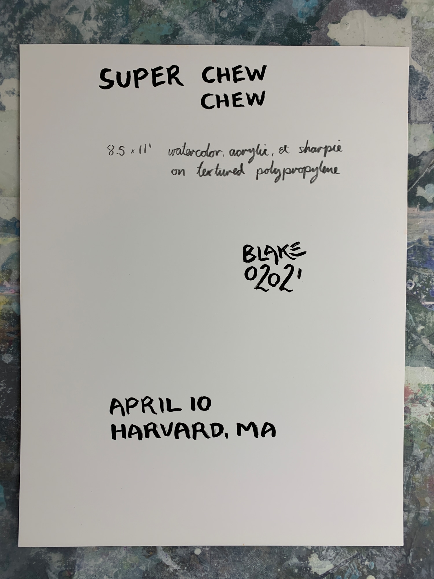 • Watercolor, Acrylic, and Sharpie on textured polypropylene