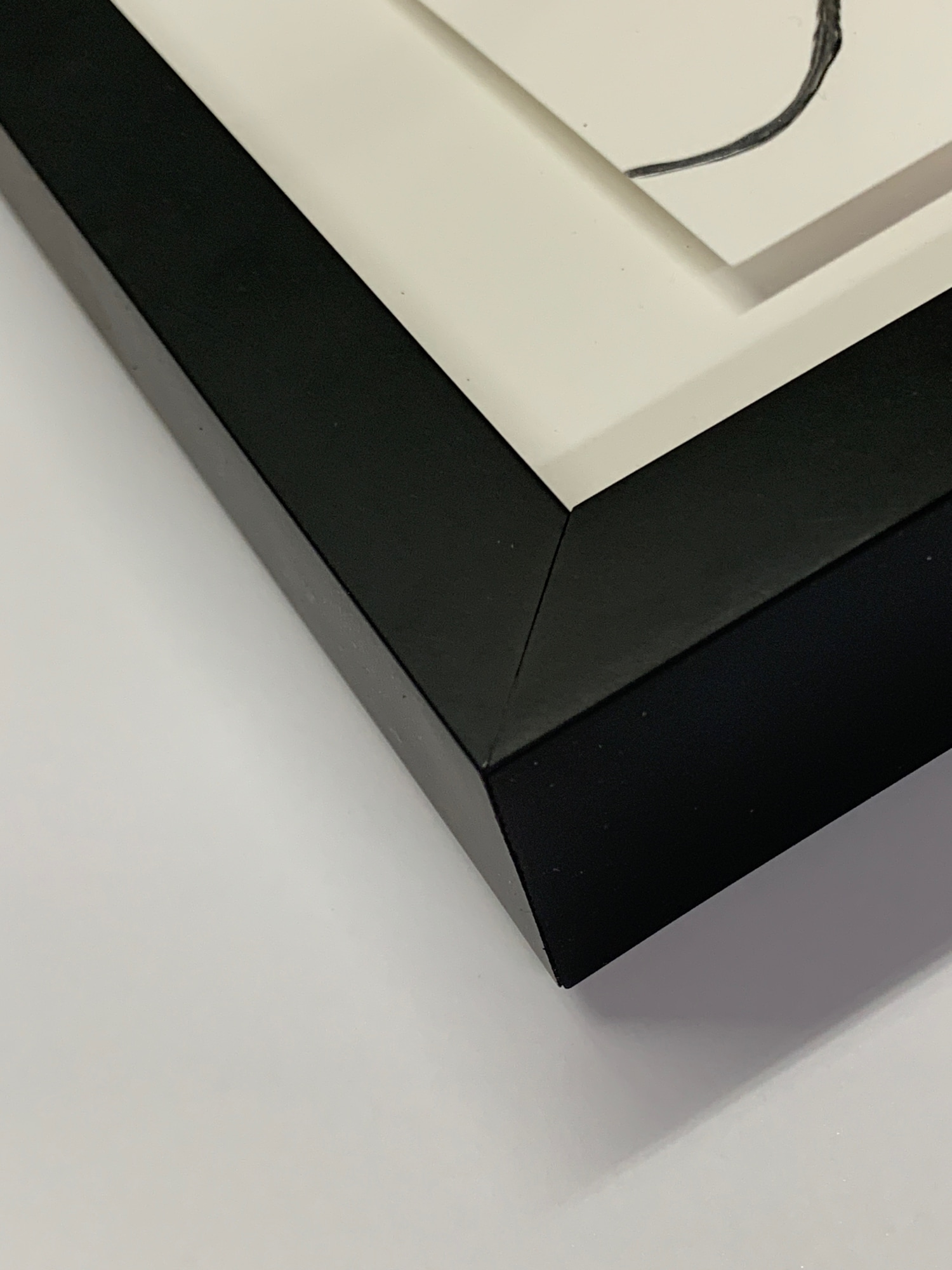 This painting is framed in a gallery deep shadowbox frame with a bit of a lift to the mount (the painting is raised a bit from the back of the frame so it appears to float in the frame).