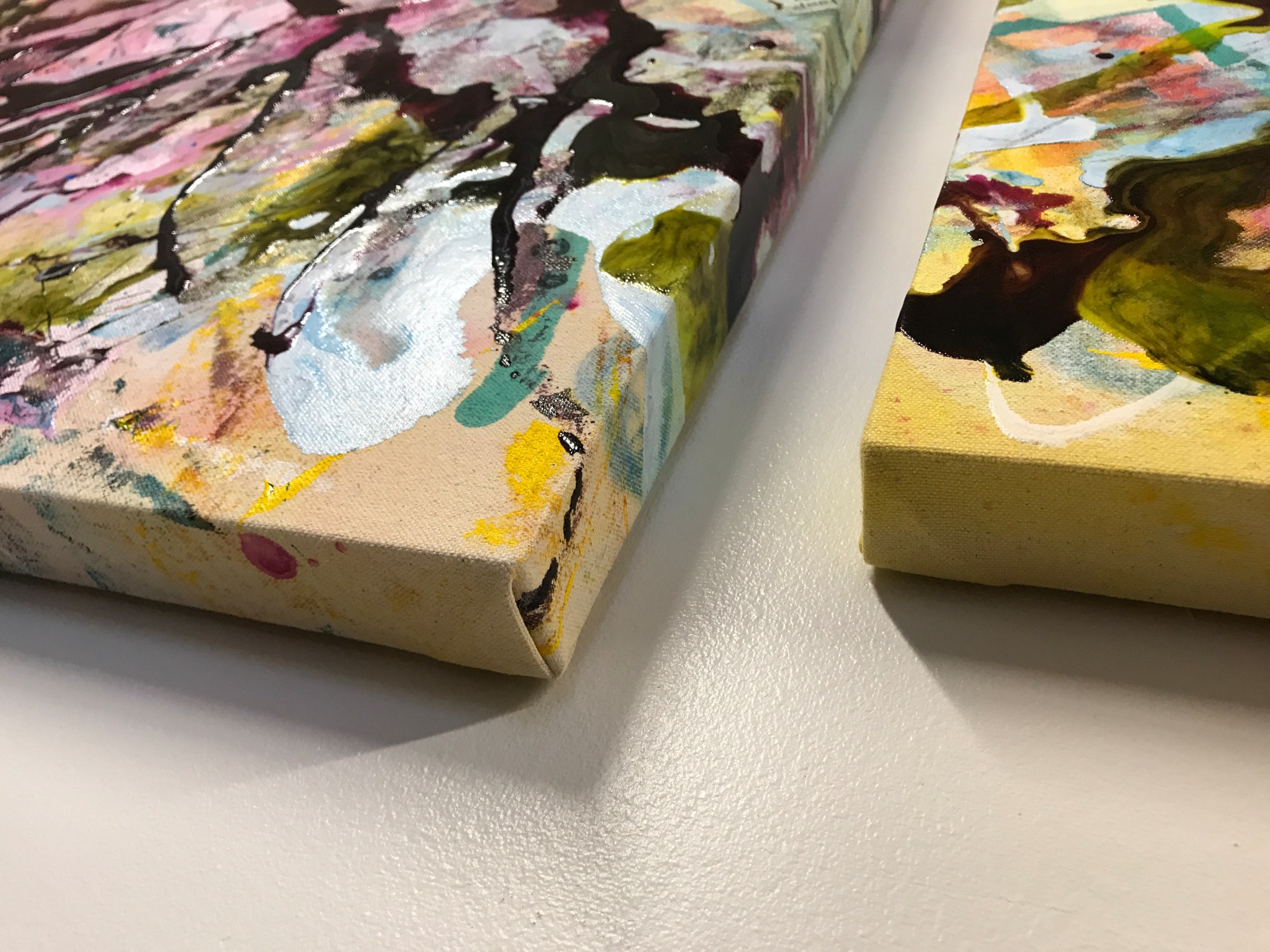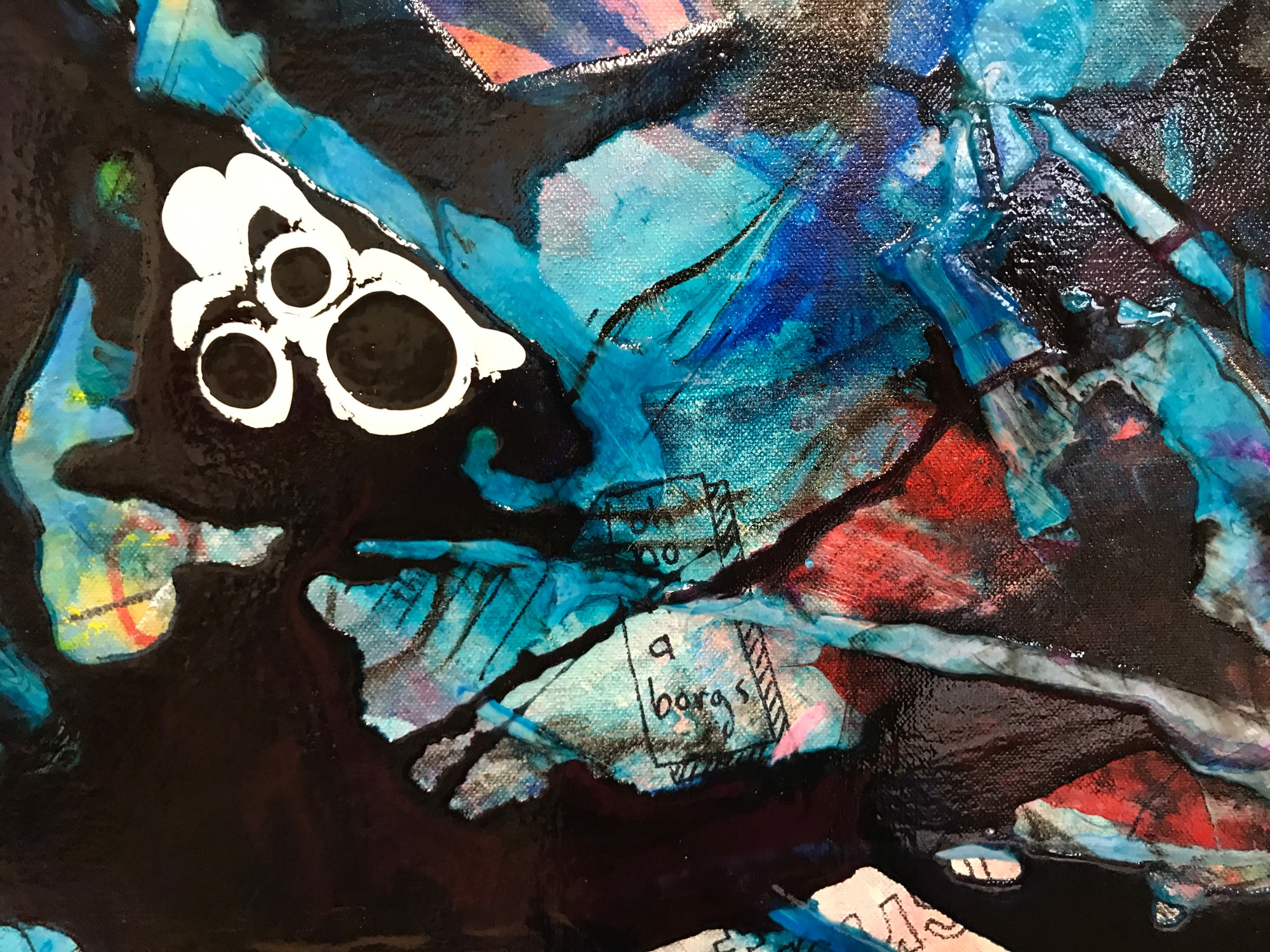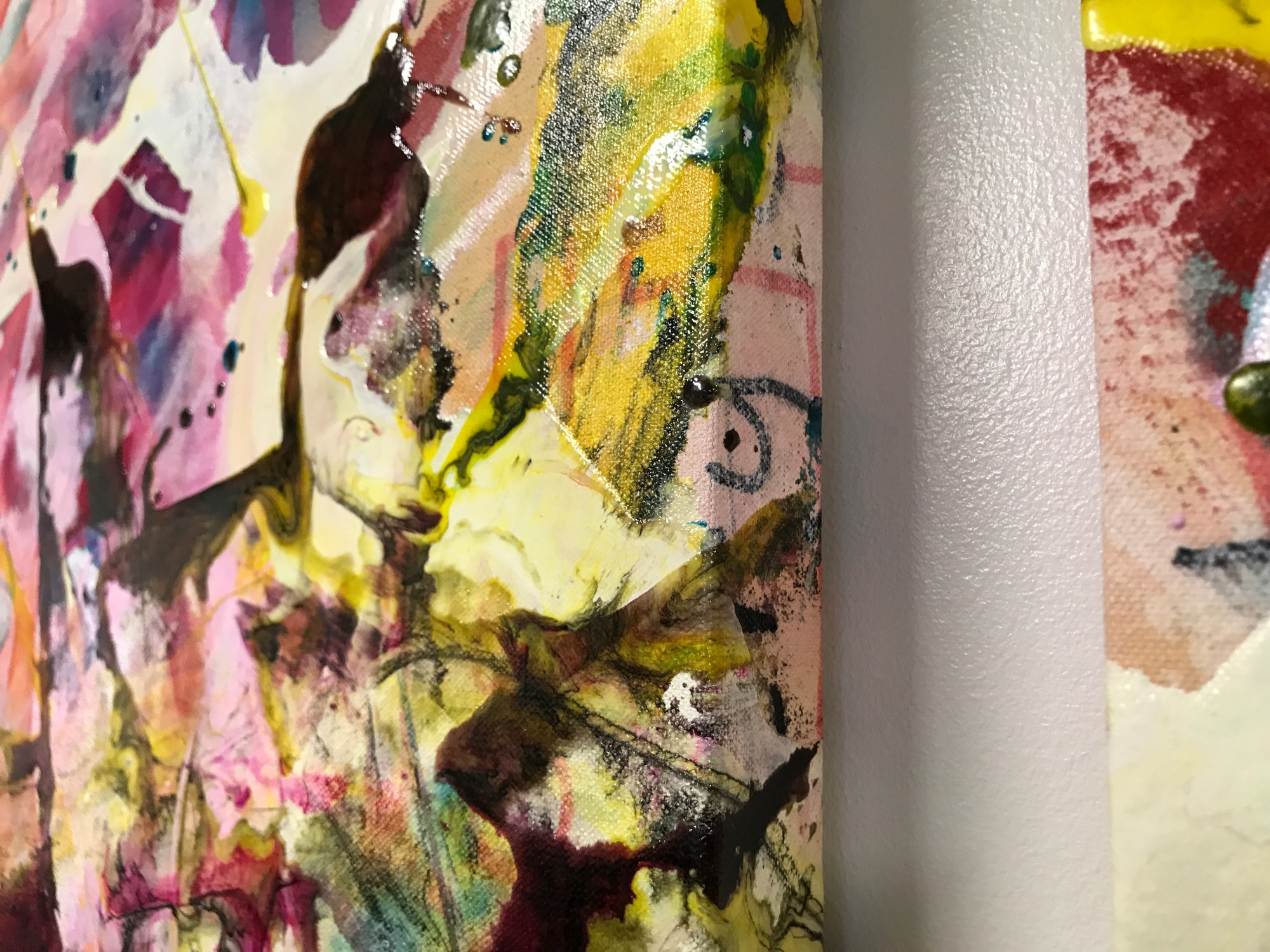 Wow! This painting is peek maximalism and it is just packed full and bursting at the seems. This is part of a series I'm calling "This One Weird Trick" mostly because the paintings in the series all involve using this specific method of smearing dark paint around with a sculpting wedge over bright colored backgrounds. But dang does it create a heck of a space to dive into in this painting. The fact that it is a triptych too; look, I'm writing this in 2023 and I can't believe this painting wasn't in the archive yet and I was on fire when I made this.
