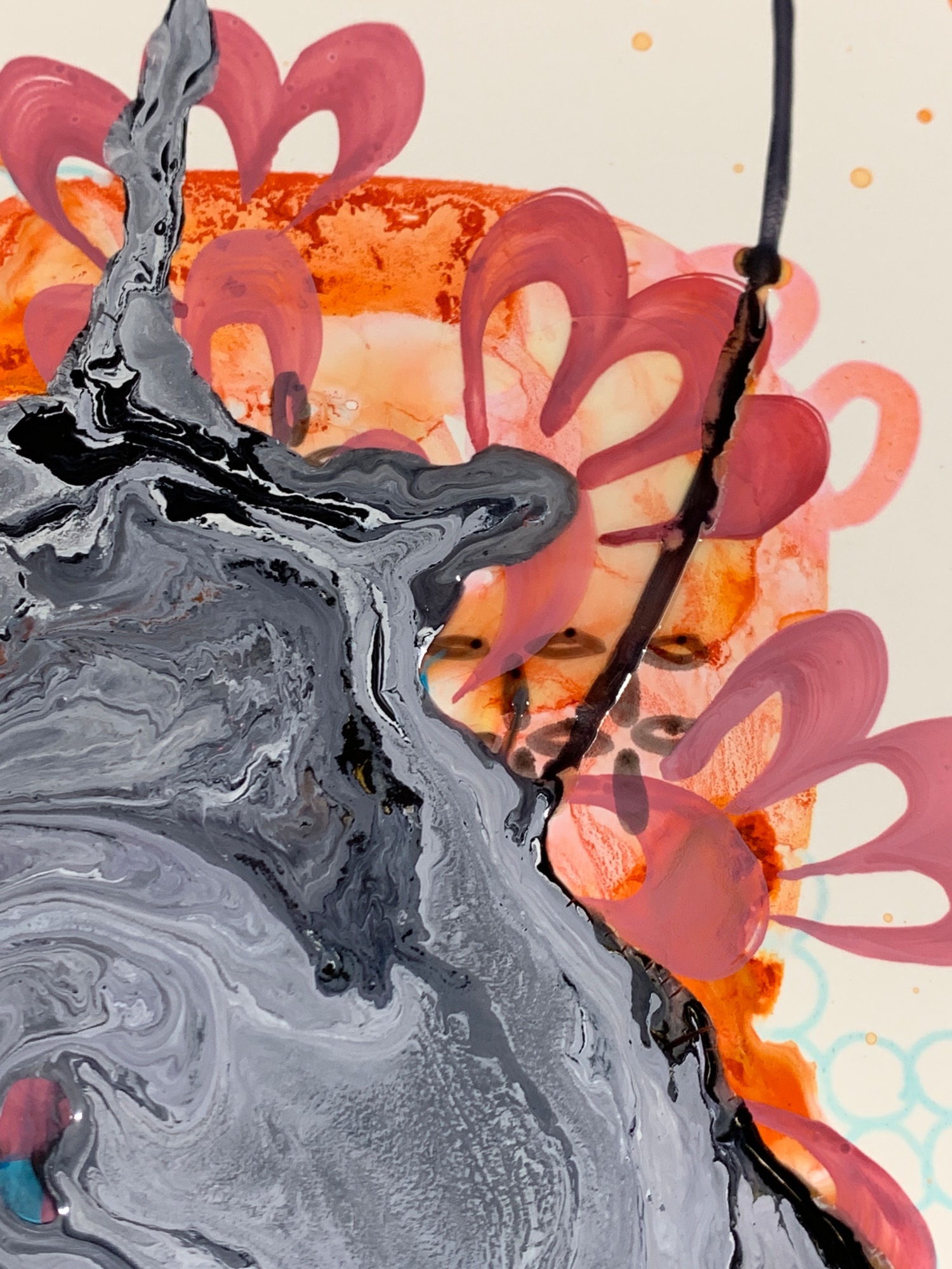 These pieces are pretty little tangles of possible space. I'm continuing my series of doing a number of small paintings all at the same time. I had been going large in my work for almost all of 2020 and the first part of 2021, so I wanted to see what would happen if I pulled it back to a smaller format. There is something a little more refined here, perhaps a little more careful, but still spontaneous and free.