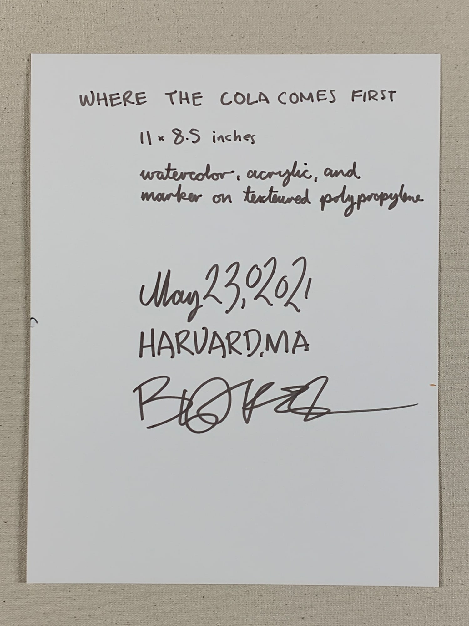 • Watercolor, Acrylic, and Sharpie on textured polypropylene