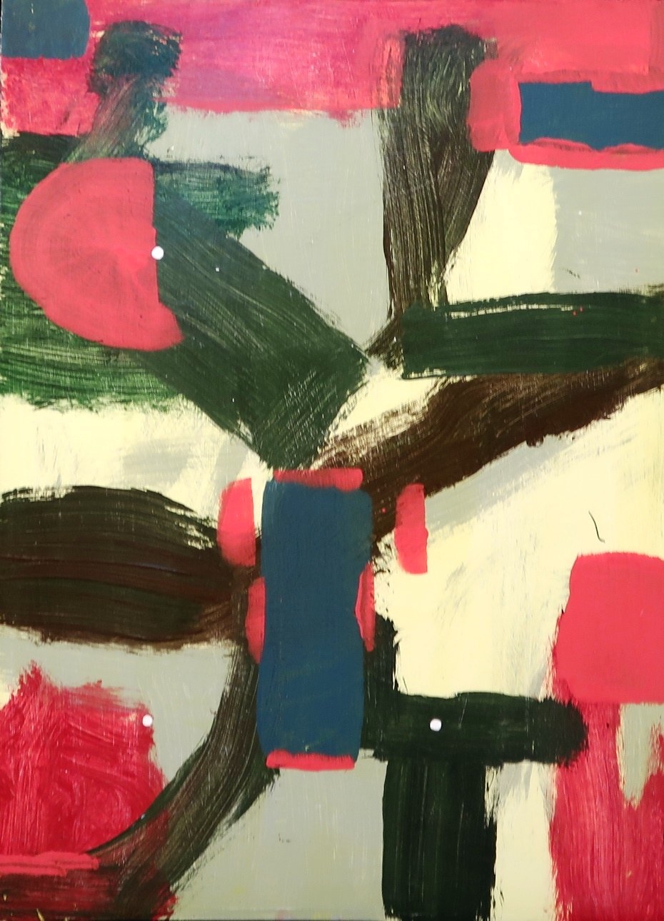 ARTIST'S NOTE: "Abstract 20.1" is one of a pair of untitled, expressionistic abstract artworks on hardboard. Orientation optional. Shown portrait.