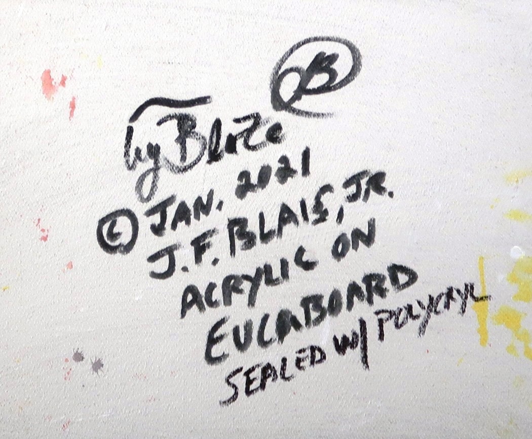 DETAILS – Acrylic paint on hardboard panel prepped with three coats of gesso.