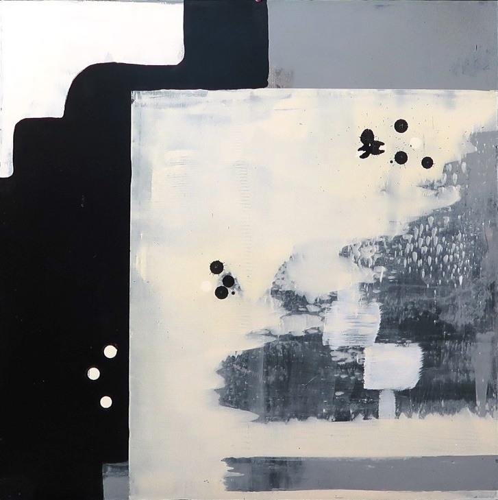 DETAILS – Acrylic paint and other media on hardboard panel prepped with three coats of gesso.