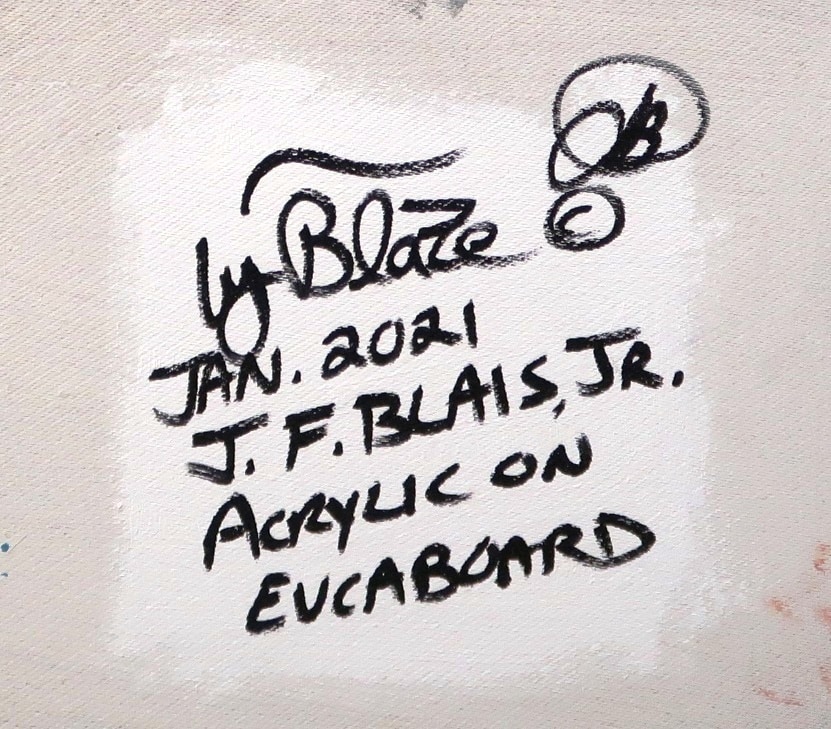 DETAILS – Acrylic paint and mixed media on hardboard panel prepped with three coats of gesso.