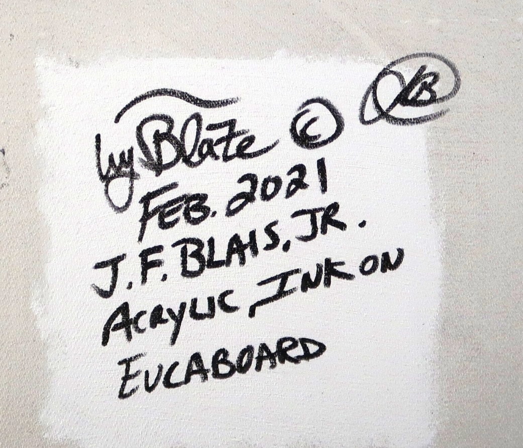 Black, white and natural wood frames or wood cradle frame made by artist are available with picture wires to be installed for either portrait or landscape orientation.