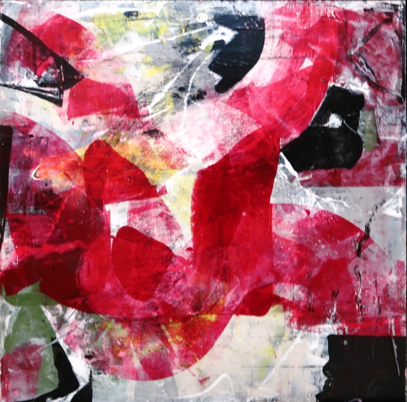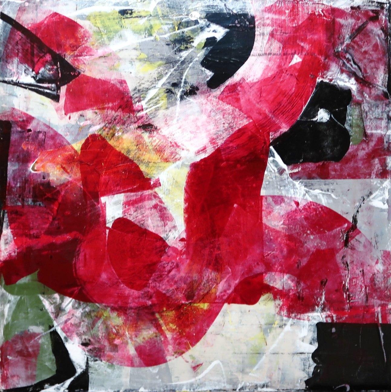 DETAILS – Acrylic paint and other media on hardboard panel prepped with three coats of gesso.