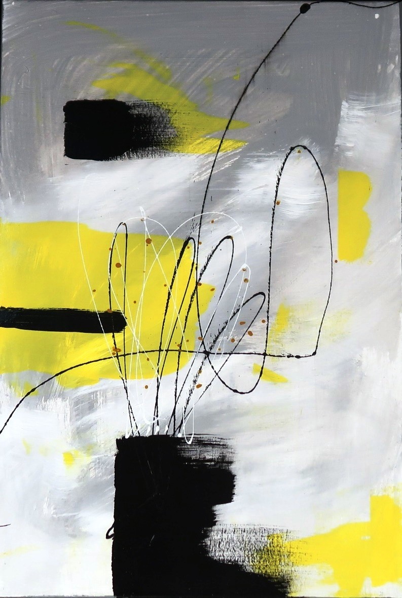 ARTIST'S NOTE: "Defoliated I" is an expressionistic artwork on metal of an incomplete plant or flower. Its complementary painting is Defoliated II.