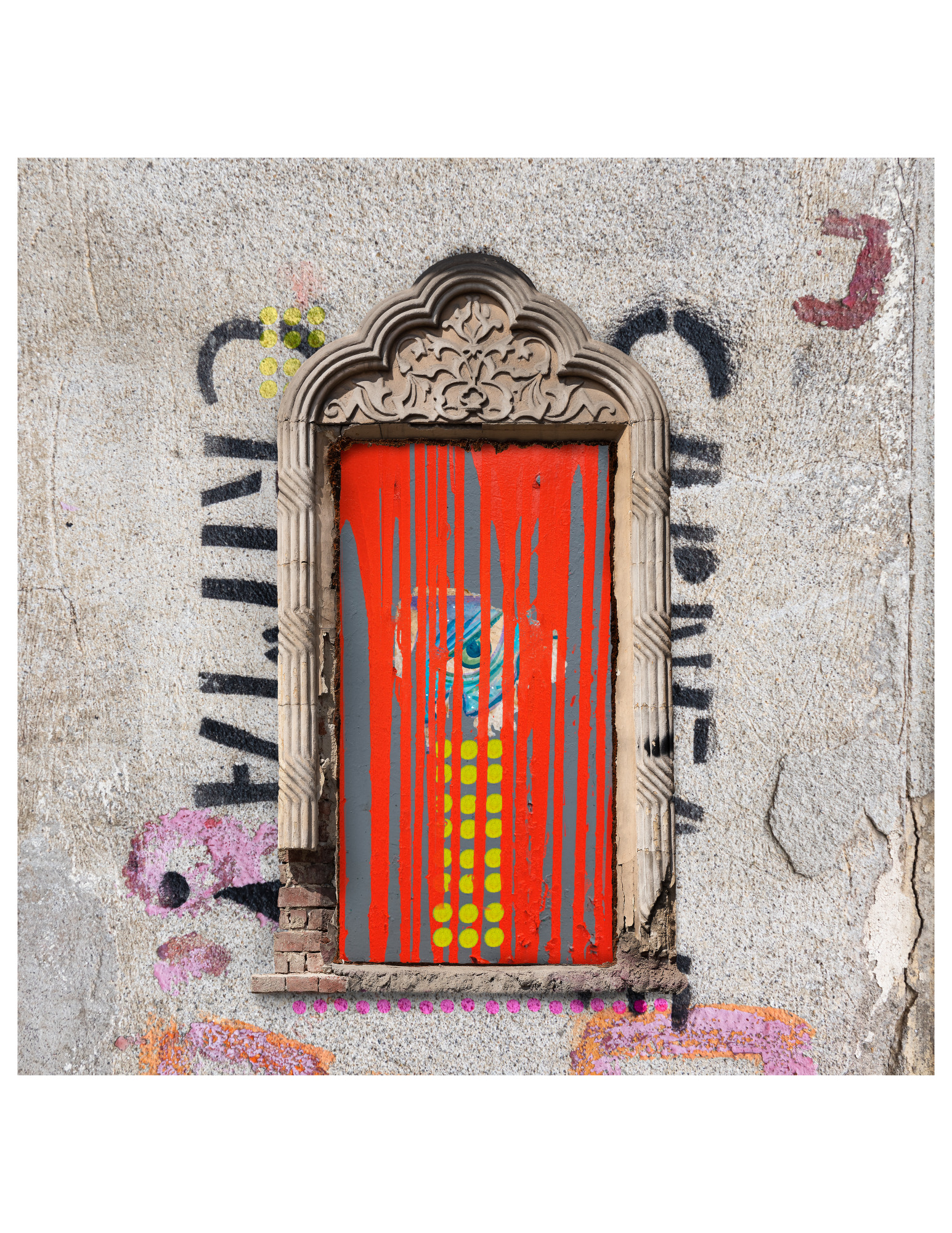 'Watcher' is a composite piece crafted from a collection of fine art photographs. Through this creation, the artist aimed to blend diverse graffiti and architectural elements from his hometown, Bucharest. The intention was to depict the juxtaposition of the contemporary and the historical in the urban landscape.