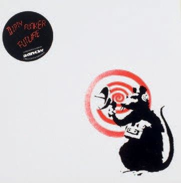 Ensemble de deux pochettes de disques realises par Banksy accompagnes de leurs vinyles 31 x 31 cm (chaque)