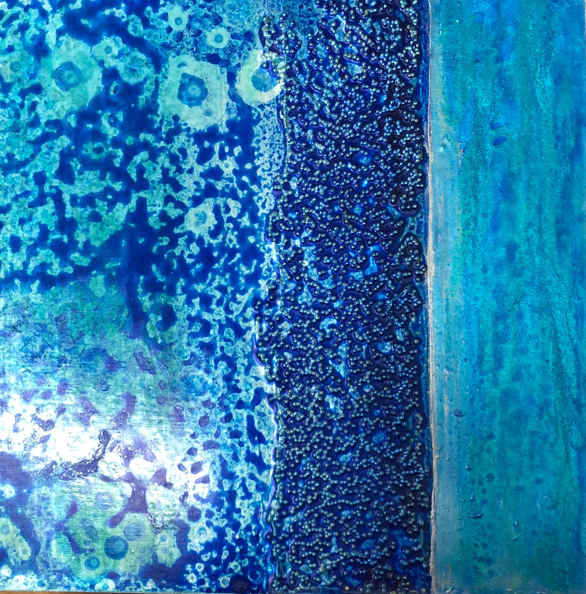 Acrylic and glass beads on panel
