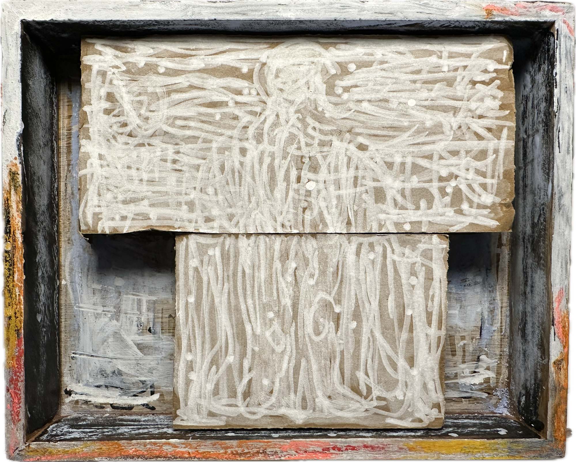 oilstick, acrylic pen & indian ink on cardboard in wooden box