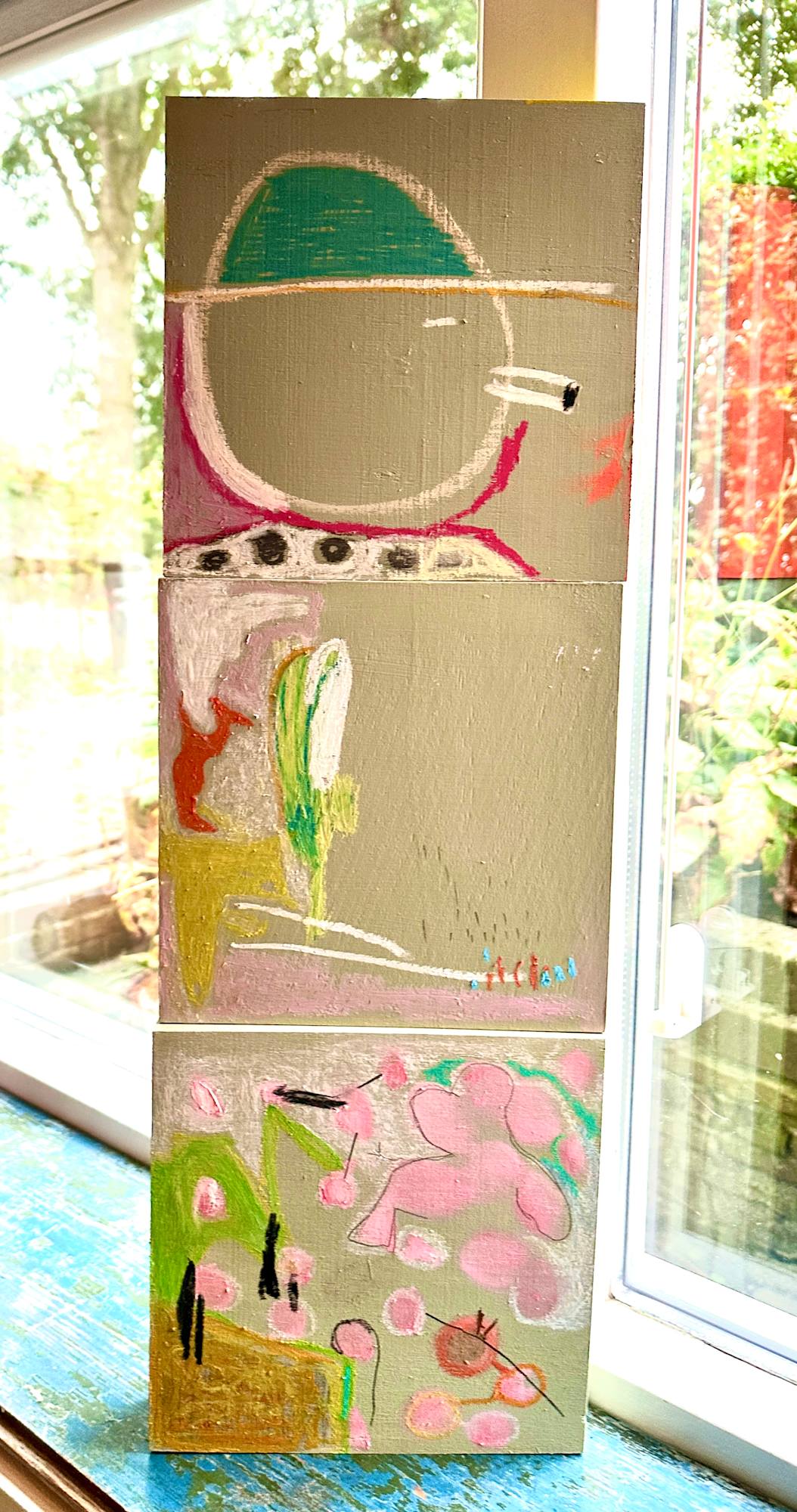 softpastel & pencil on wooden box