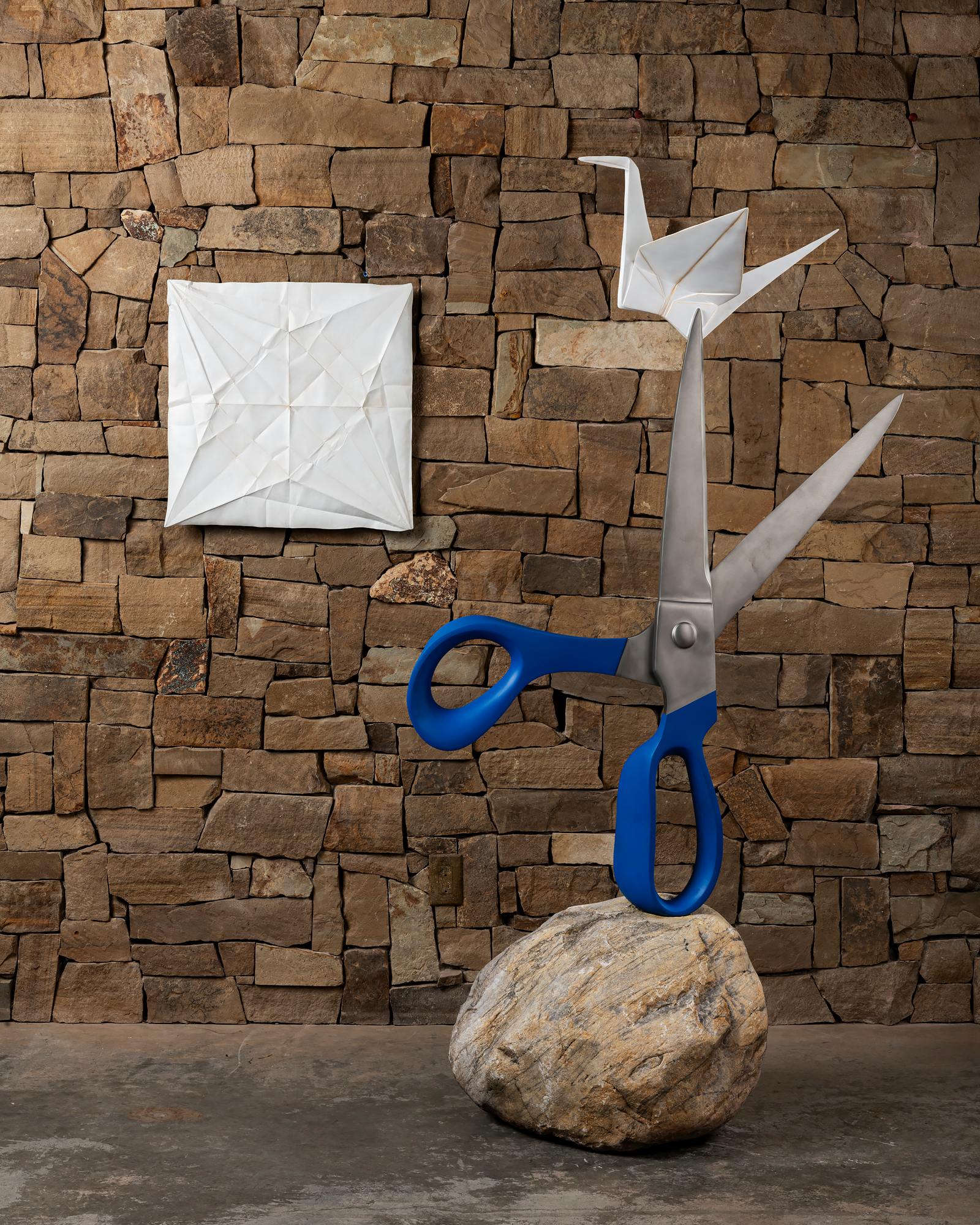 painted cast stainless steel on stone