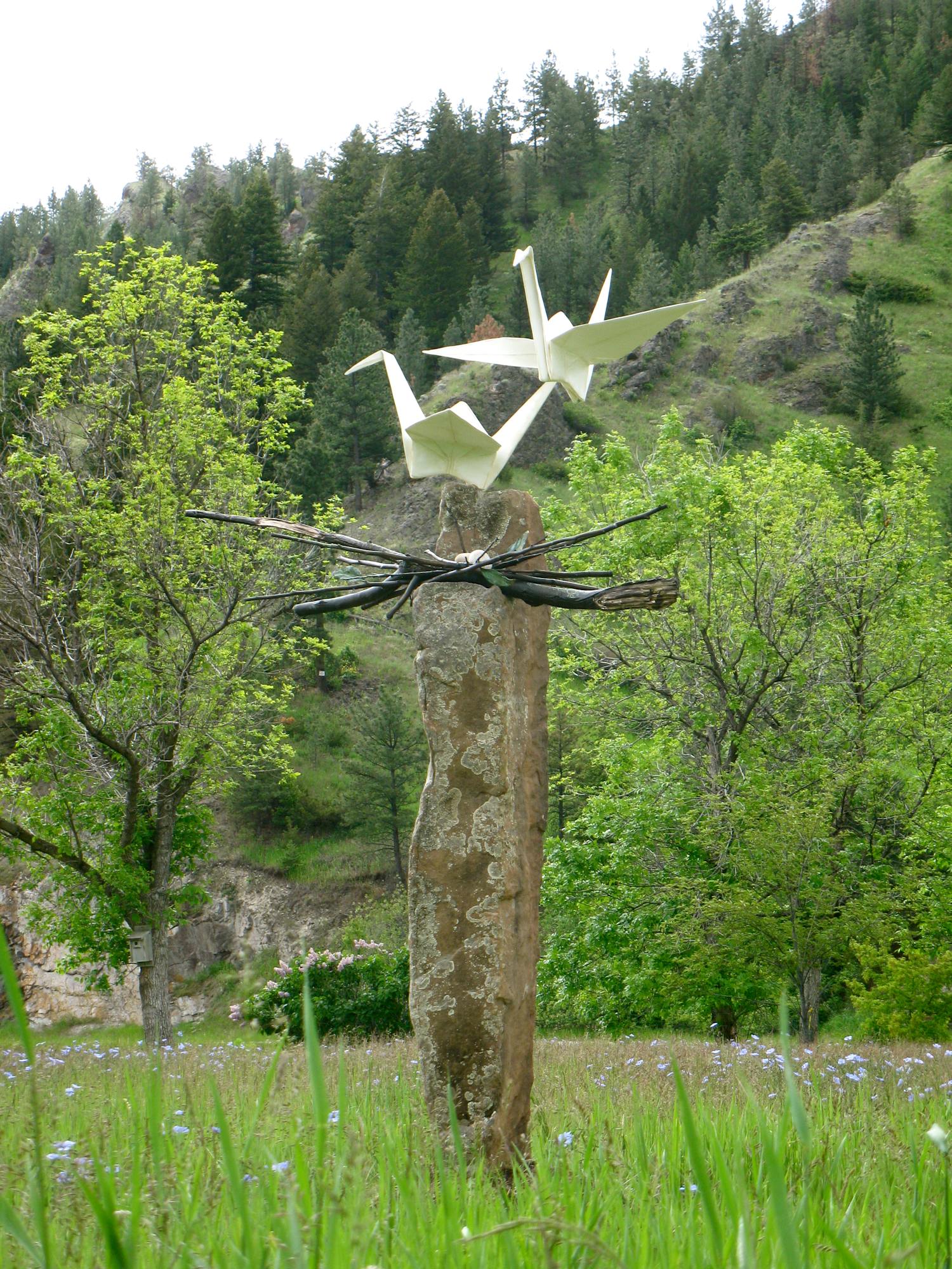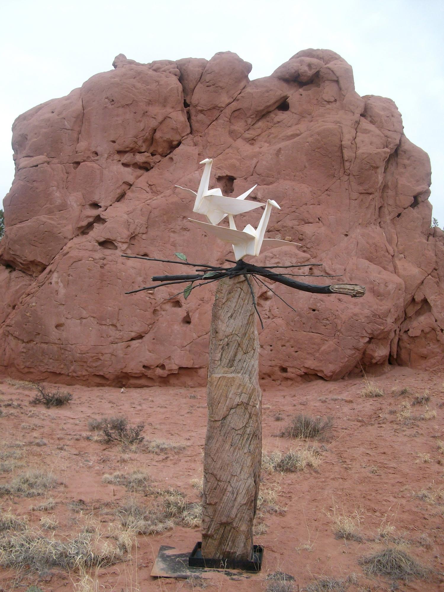 powder coated cast stainless steel and patinated cast bronze on character stone