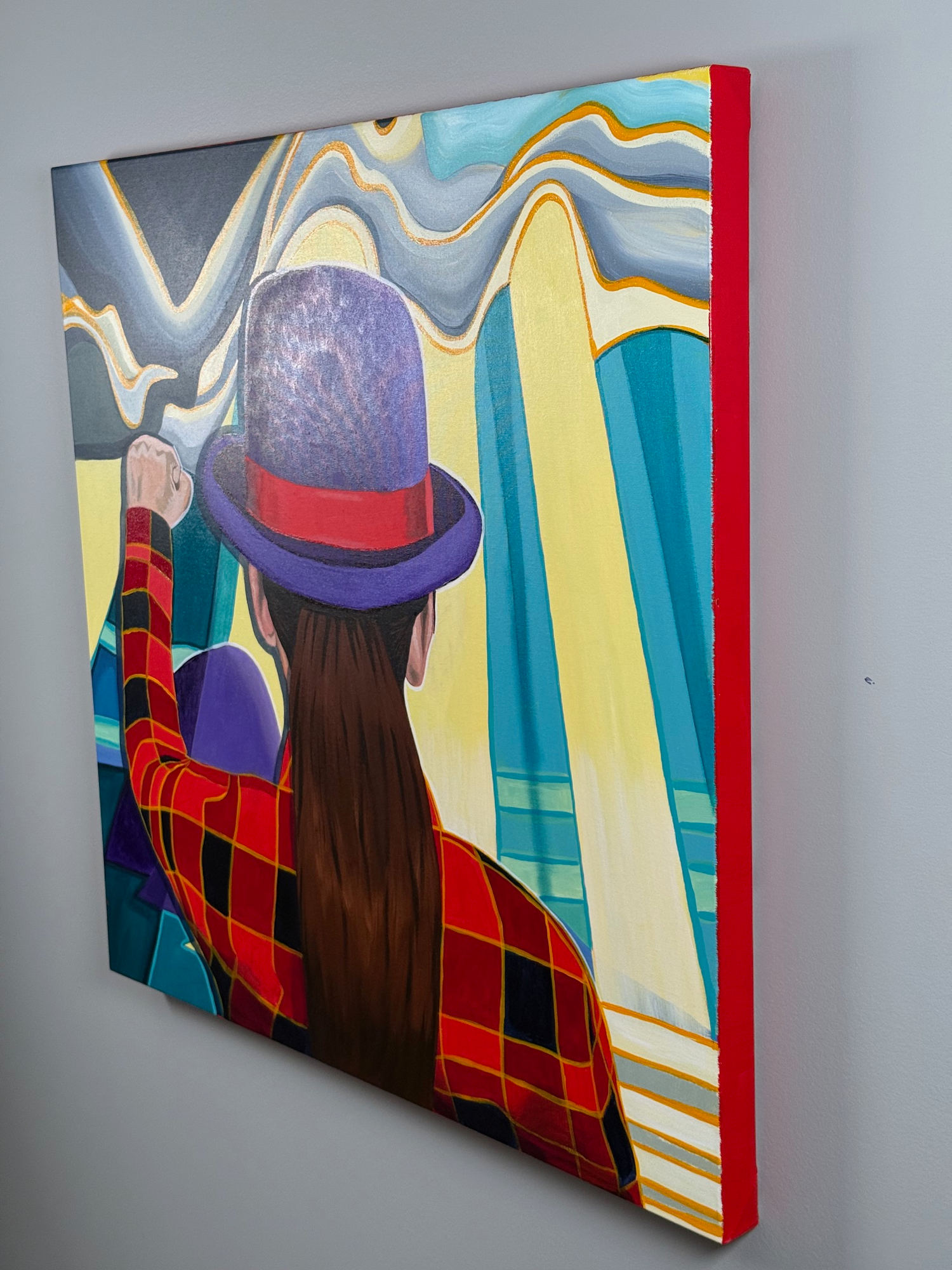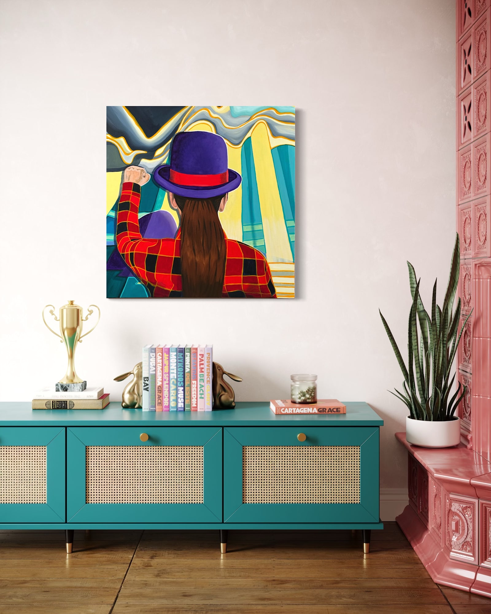 There was a girl with long brown hair wearing a purple bowler hat and plaid shirt. She was never home long, she enjoyed the road and all that the world offered. She went to the horizon and knocked on the sky, and heard it echo back, dancing along she ran on.